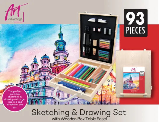 The ideal gift set for sketch artists and hobbyists! Set includes all the essential supplies required to draw and sketch, packaged in a wooden box to protect your supplies.