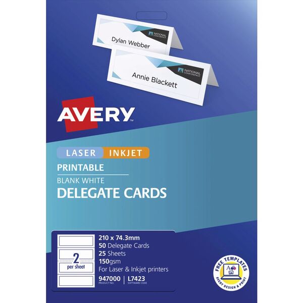These Avery delegate cards are perfect for using at your next event, function, show, conference or party. You can design your cards using avery software and print them out on your laser or inkjet printer resulting in a professional finish.
