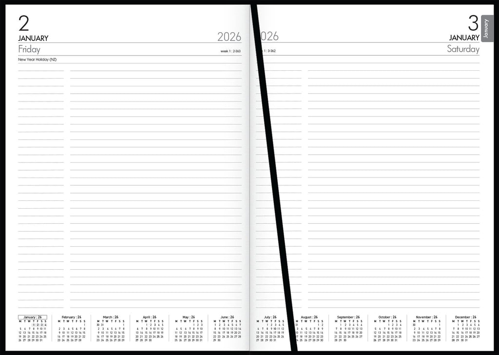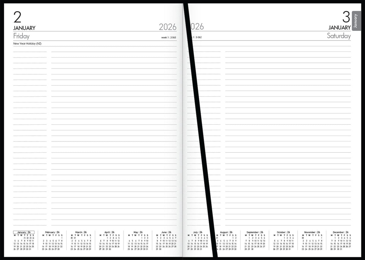 Day to view, 1/2 hour appointments 7.30am-7.30pm. Cash summary. Ribbon marker. Sewn, hard cover, book cloth cover.