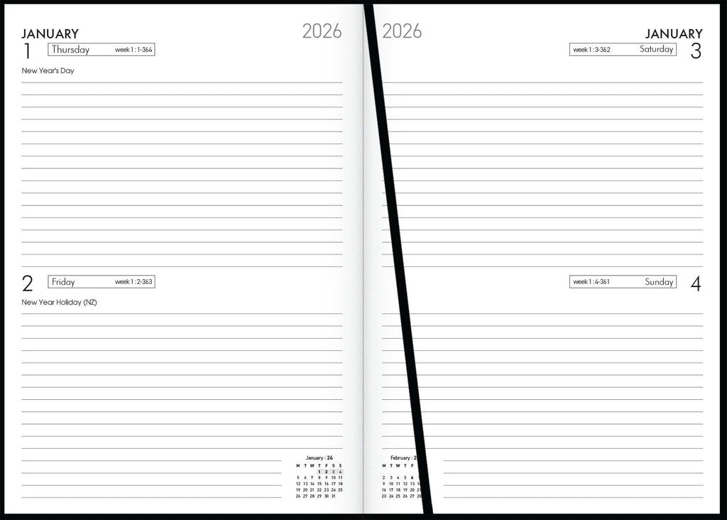 2 days to view. Ribbon marker. Sewn, hard cover, book cloth cover.