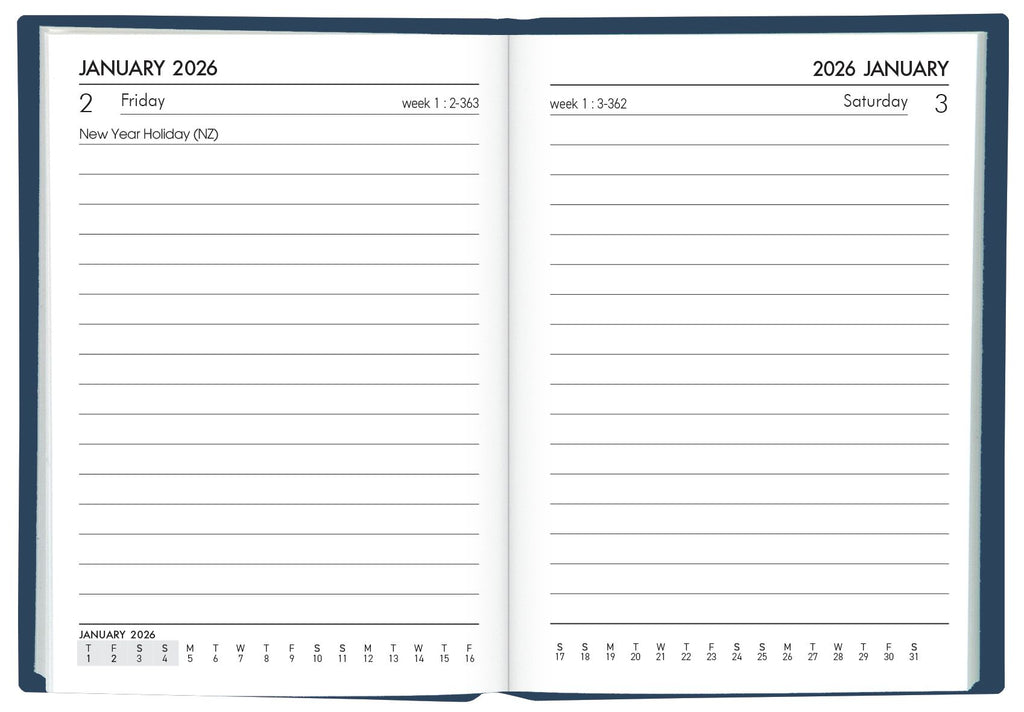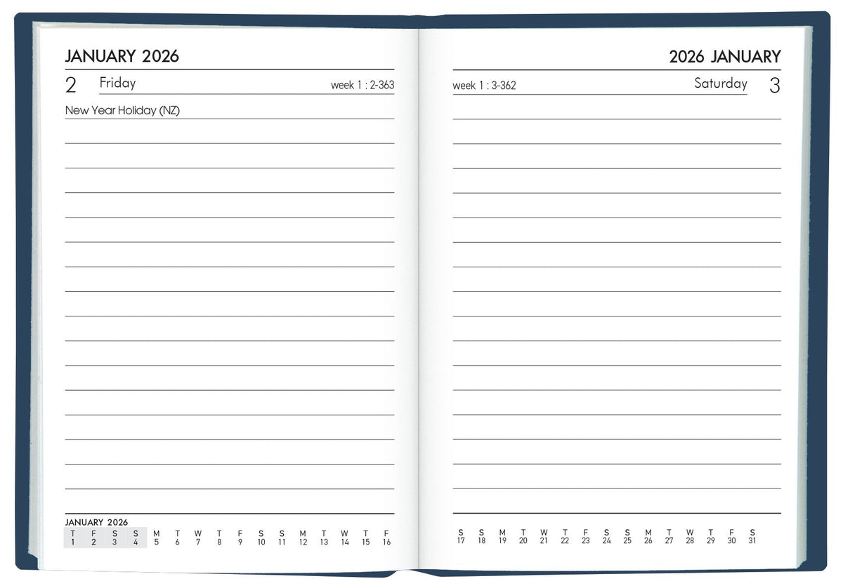 A71 pocket Diary 105x74mm. Day to view, full day Sat/Sun. Adhesive bound, limp, PVC cover. FSC certified.