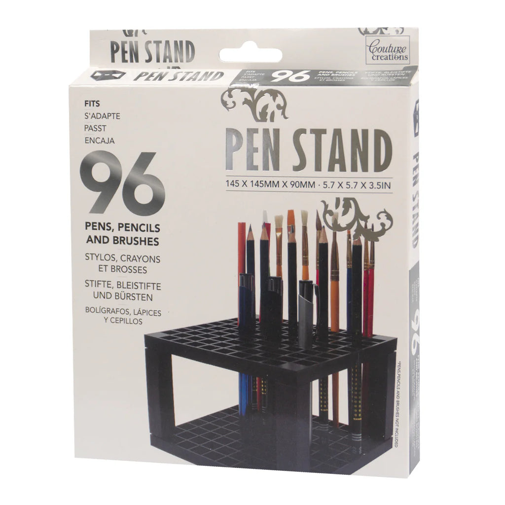 This simple and robust pen stand is easy to assemble and holds up to 96 pens, pencils and brushes as needed.