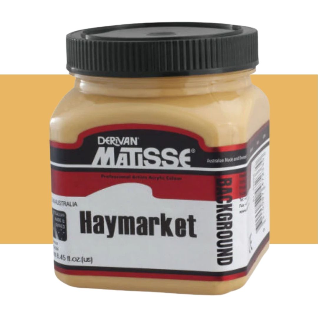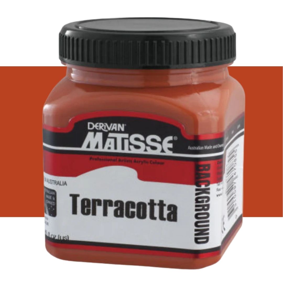 Matisse Background Colours can also be used with stencils, design painting, or simply as a flat decorative wall and ceiling paint. Apply direct from the jar and clean up with water. They spread easily with brush or roller and dry fast to a matt-velvet finish. Matisse Background Colours make an ideal coloured gesso. They come in 250ml "stack-up jars" with a selection of the most popular colours available in 1 Litre pails