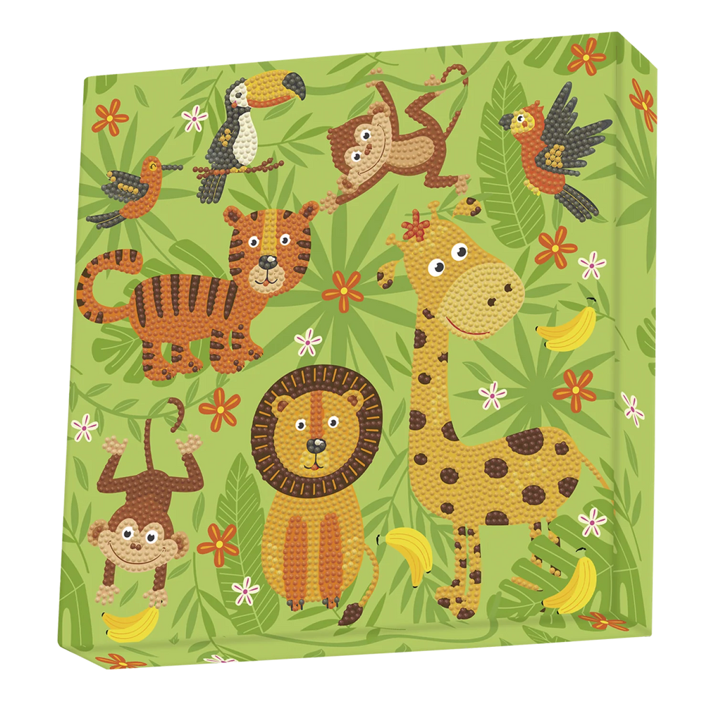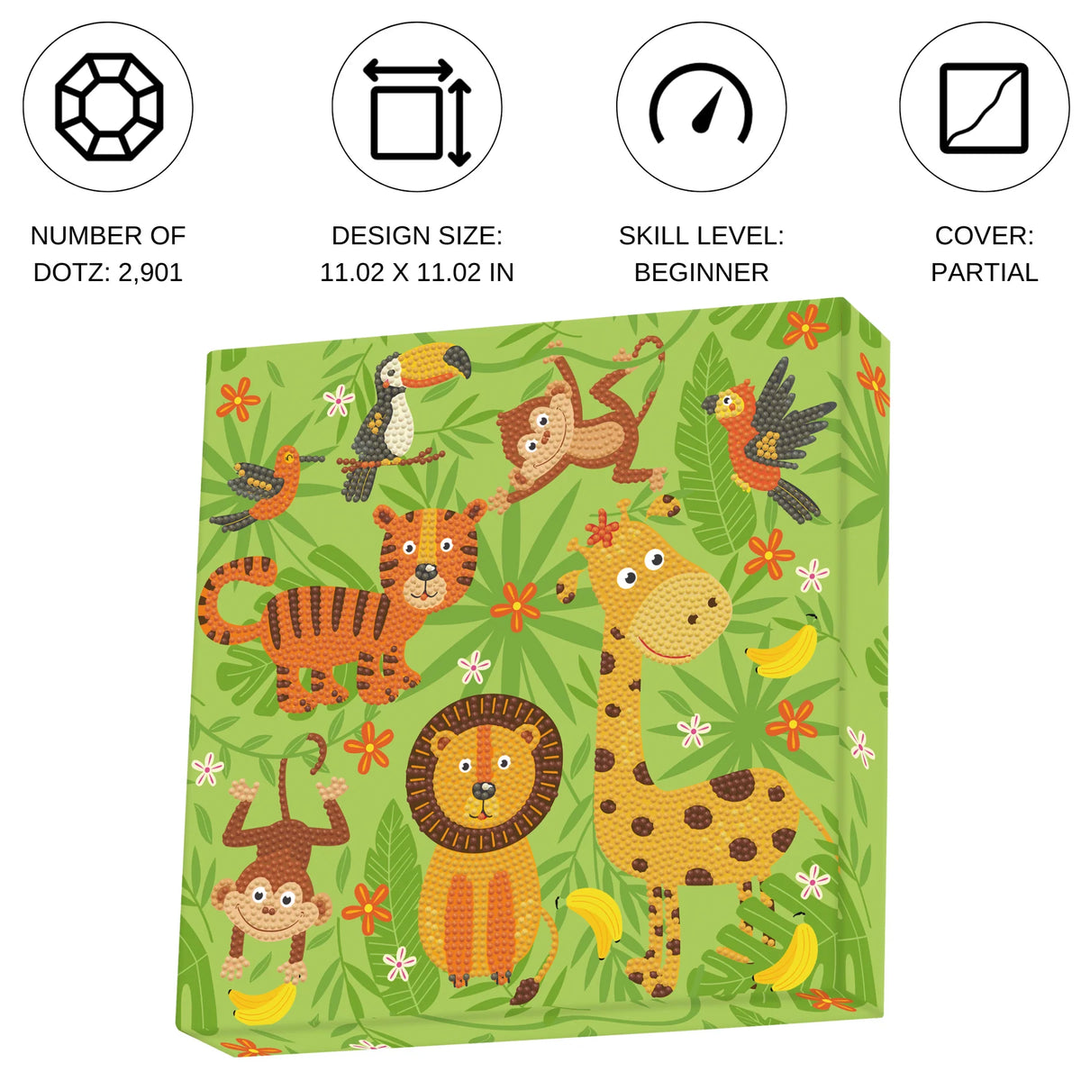 Design & Focus: Features the exciting In The Jungle design. The art is created using partial coverage with round dotz, allowing the vivid printed background to complement the finished diamond work.