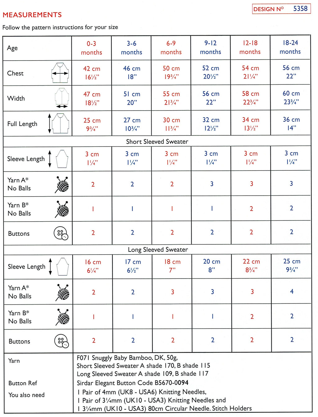 This raglan sweater duo was designed for the Snuggly Baby Bamboo DK yarn by Sirdar or the Angel Bamboo 8ply yarn by DMC. The garments feature raglan sleeves and striped details chest. After being knit flat in pieces and seamed together, the rib-stitched striped collars at the neckline are added before the buttons are sewn in.