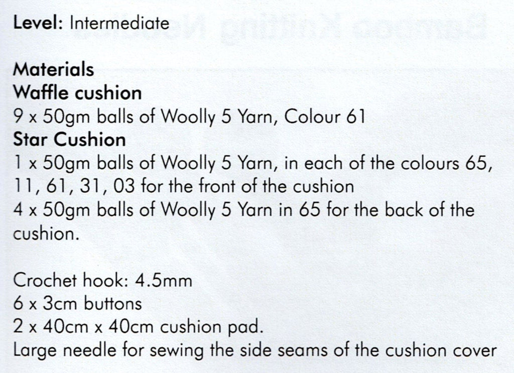 You will need: 4.5mm crochet hook, 6 buttons, 2 cushion pads, needle for sewing side seams of cushion cover.