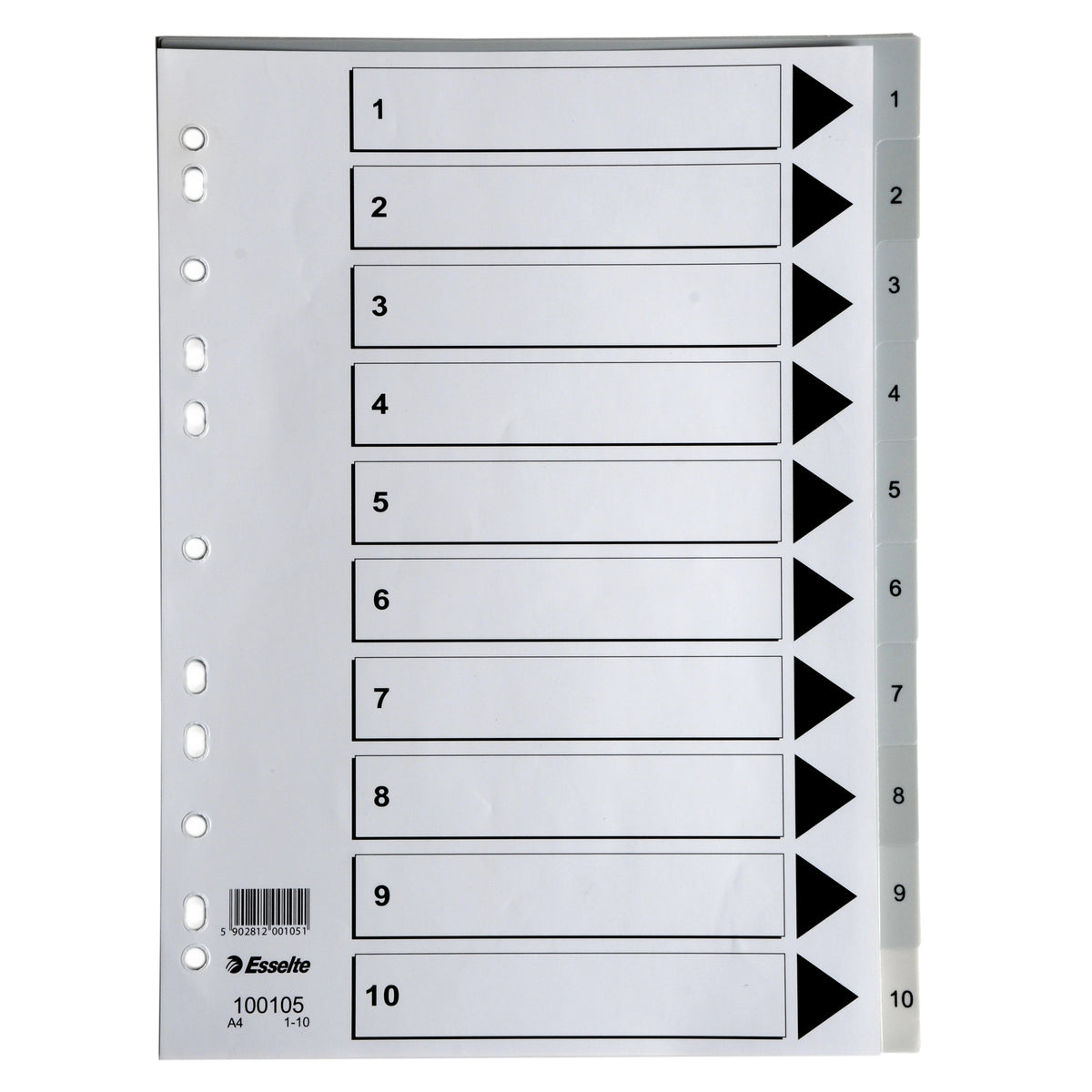 Reinforced punched strip on front sheet 10 tabs printed 1-10 for quick document access 11 hole universal fit A4 format 0,12 mm PP