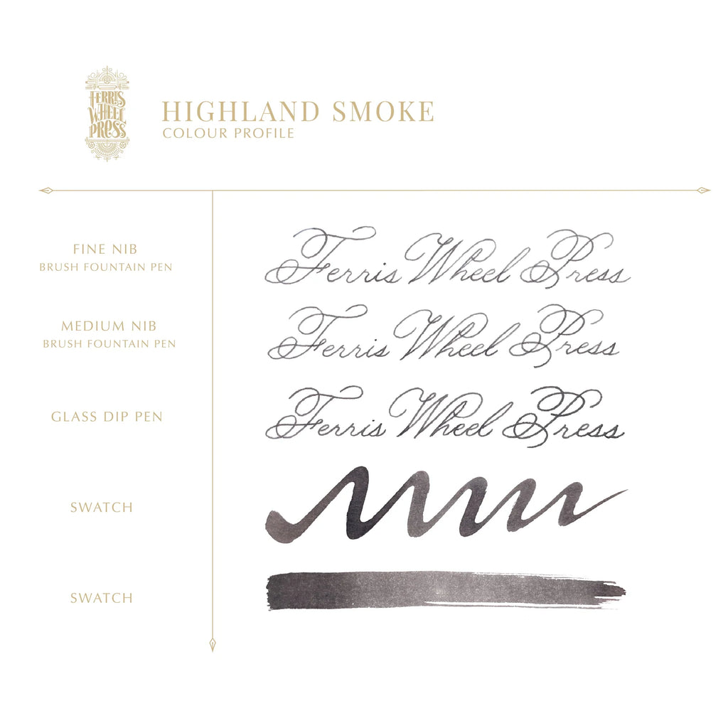 The Ferris Wheel Press Highland Smoke ink is a rich and sophisticated fountain pen ink that's inspired by the misty highlands and the cozy comfort of a fireplace. This ink is designed to bring a sense of warmth and joy to every time you write.