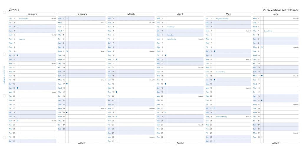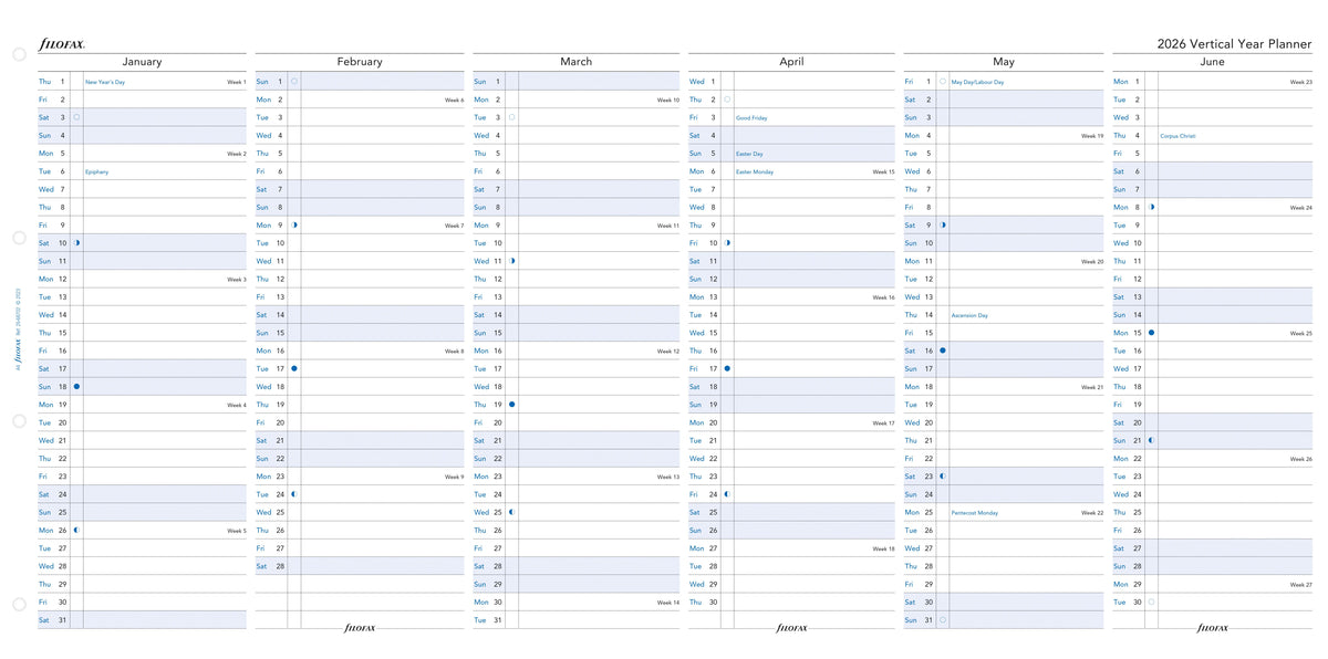 Plan your whole year with this A4 vertical format fold out year planner. English language only. 100 gsm fountain pen friendly paper. Compatible with Filofax A4 size Organisers.