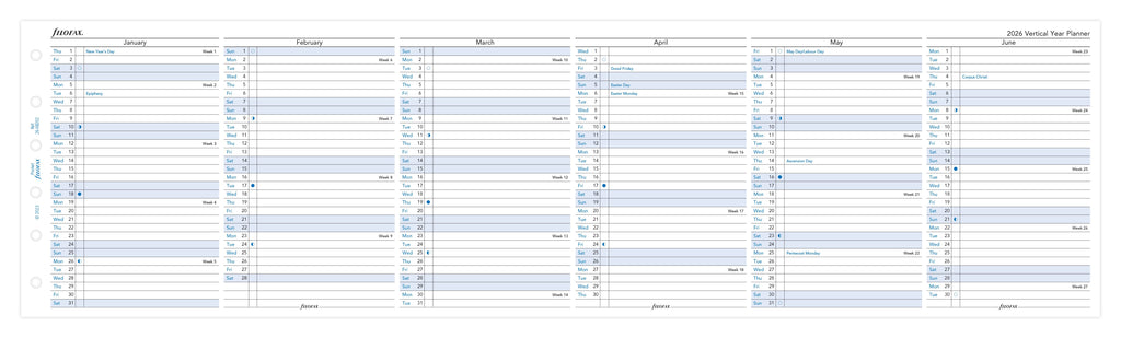 Plan your whole year with this pocket vertical format fold out year planner. 100 gsm fountain pen friendly paper. Compatible with Filofax Pocket size Organisers.