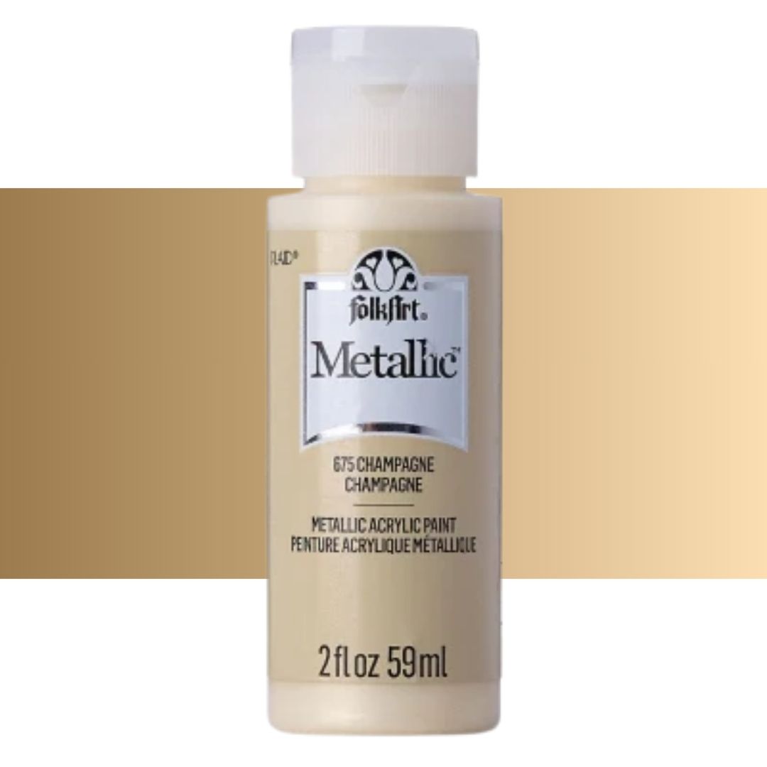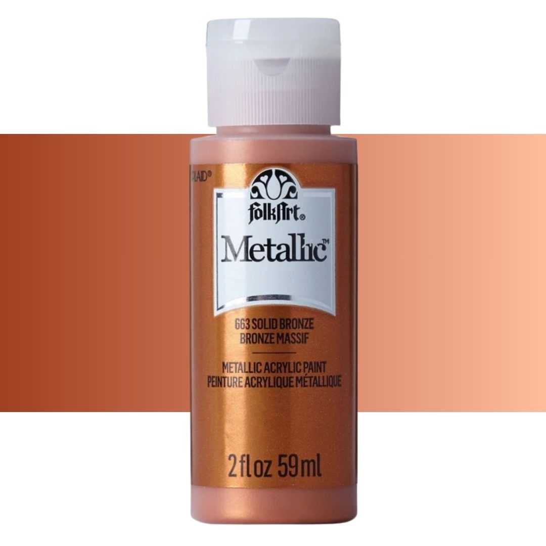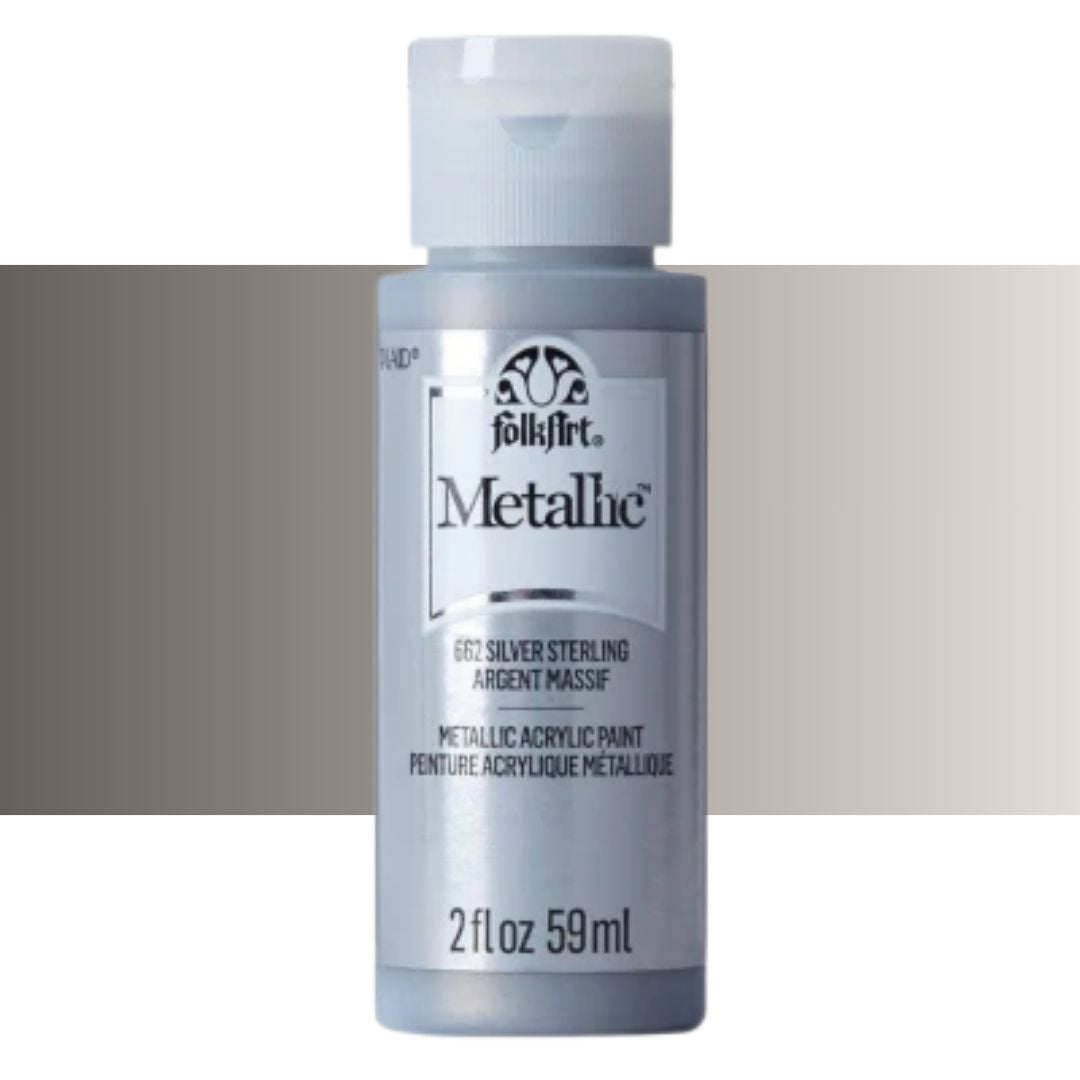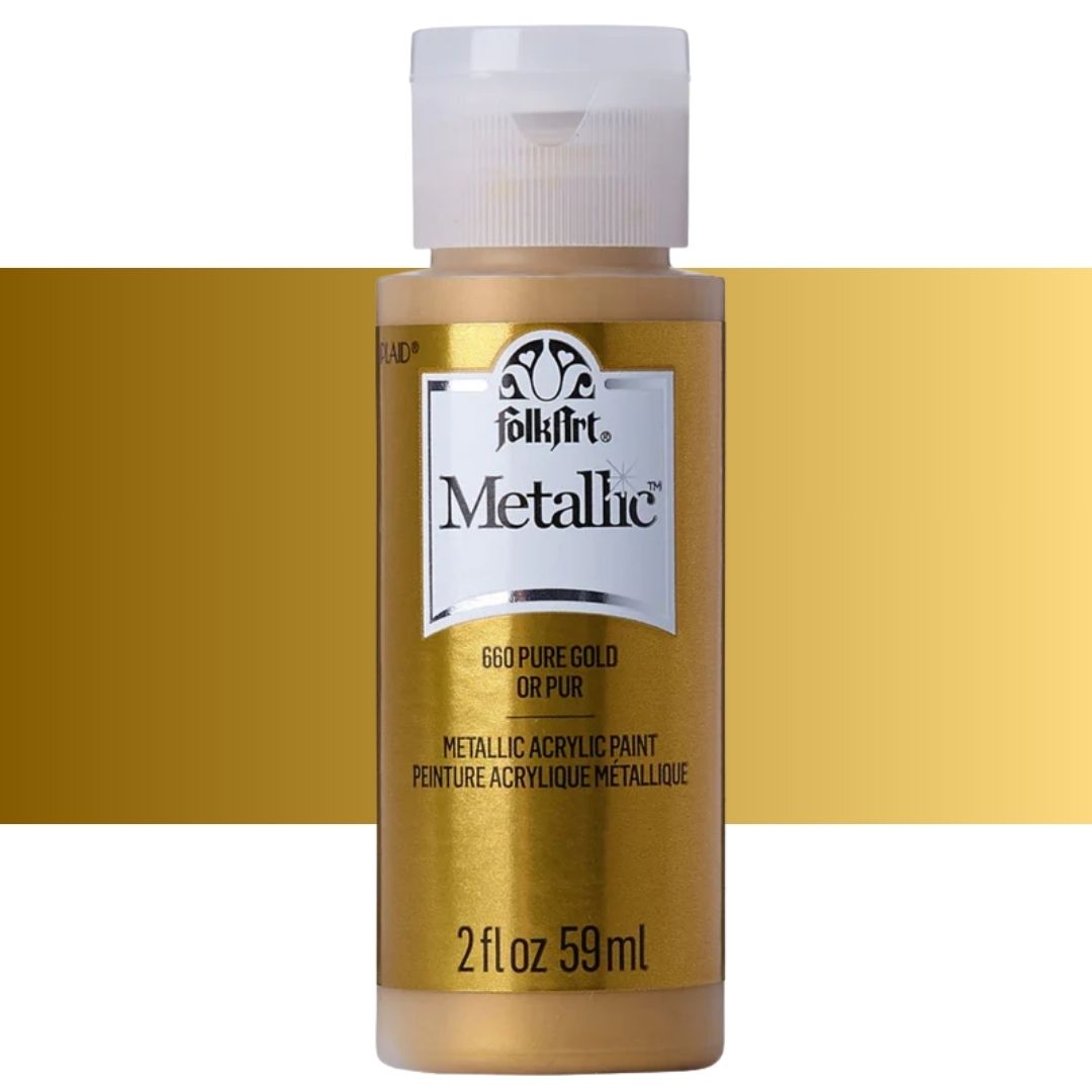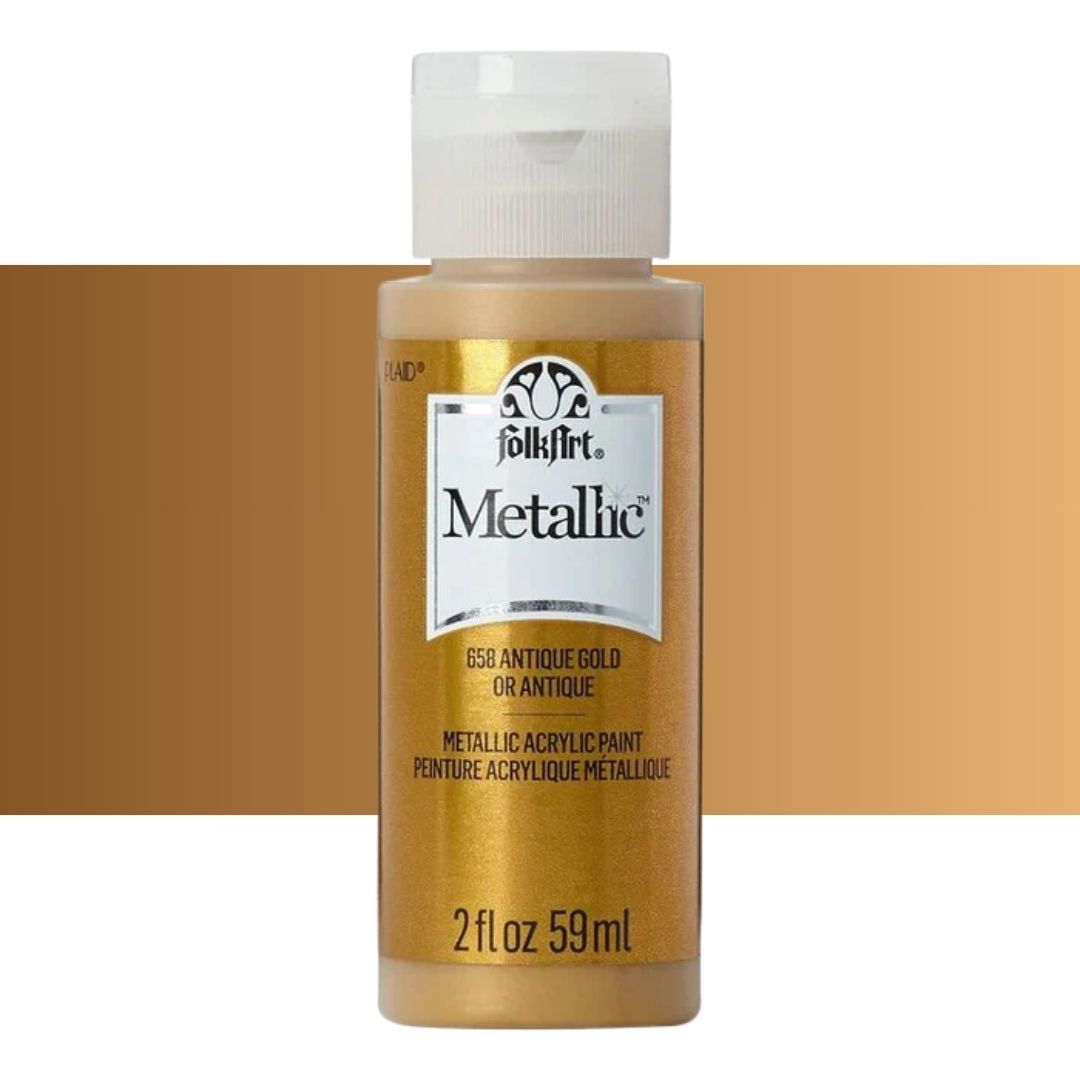 Add some shimmer to your next diy project with FolkArt metallic acrylic paint. This acrylic paint has a creamy and shiny consistency that brushes on smooth leaving a beautiful metallic finish.