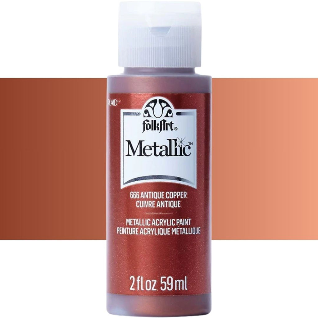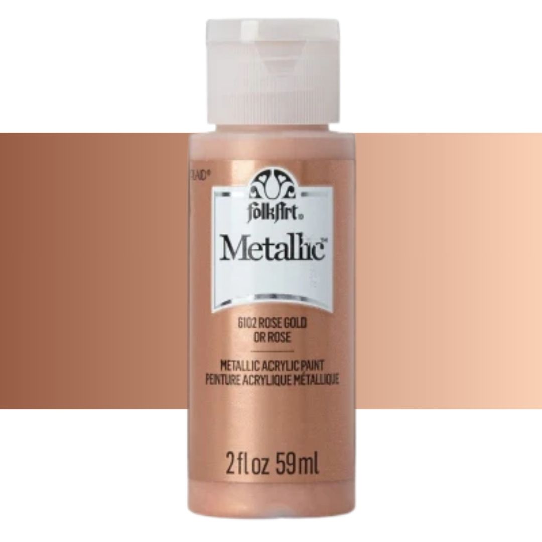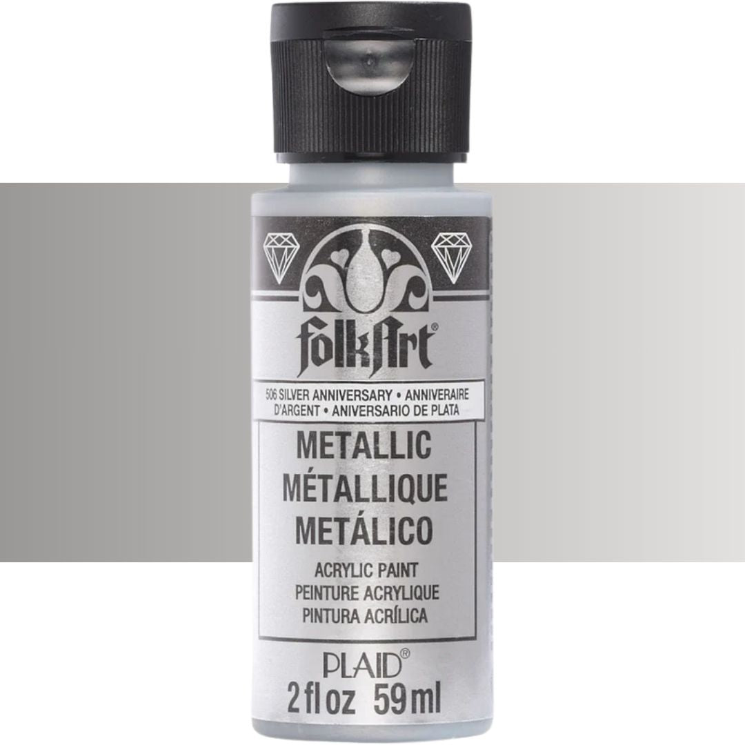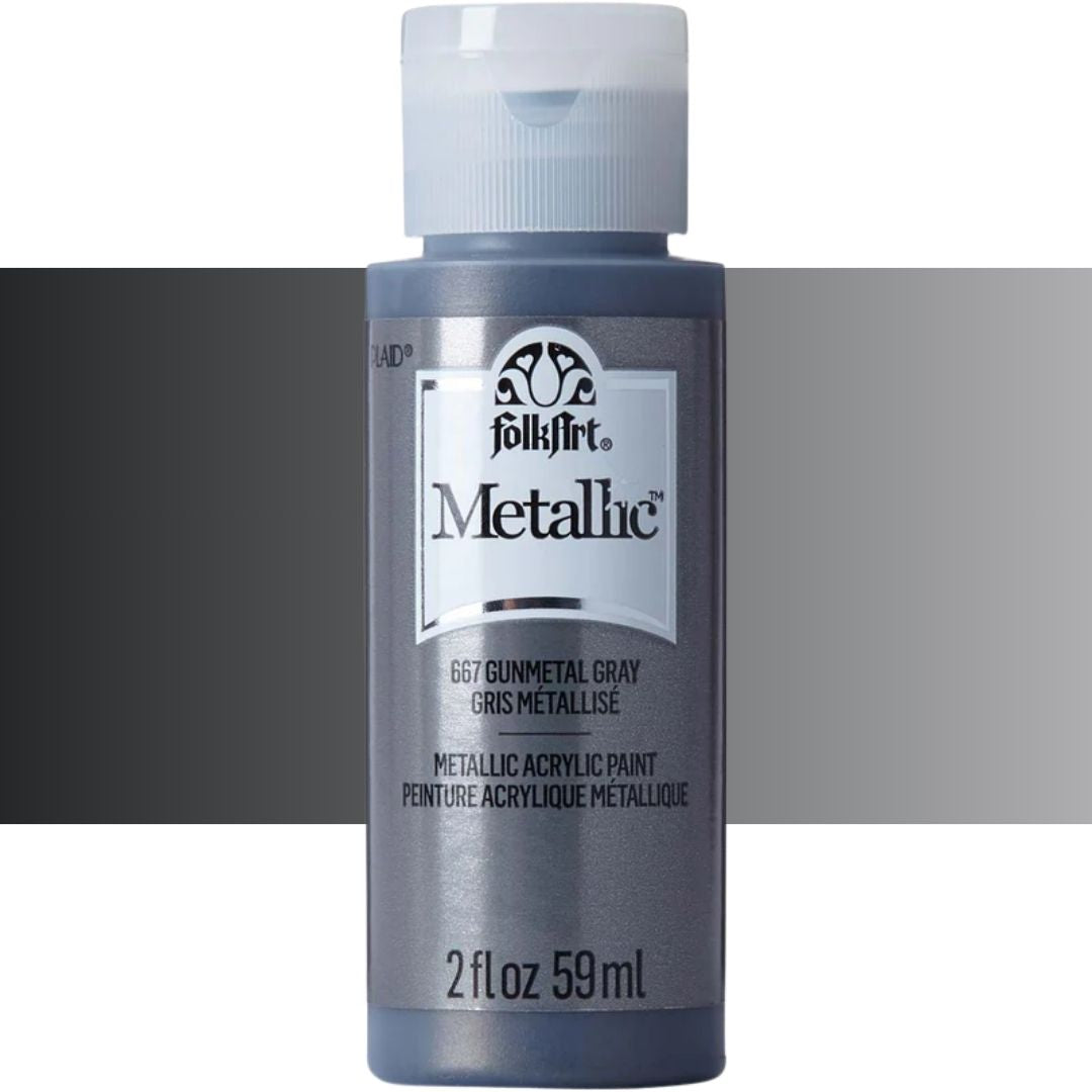 Add some shimmer to your next diy project with FolkArt metallic acrylic paint. This acrylic paint has a creamy and shiny consistency that brushes on smooth leaving a beautiful metallic finish.