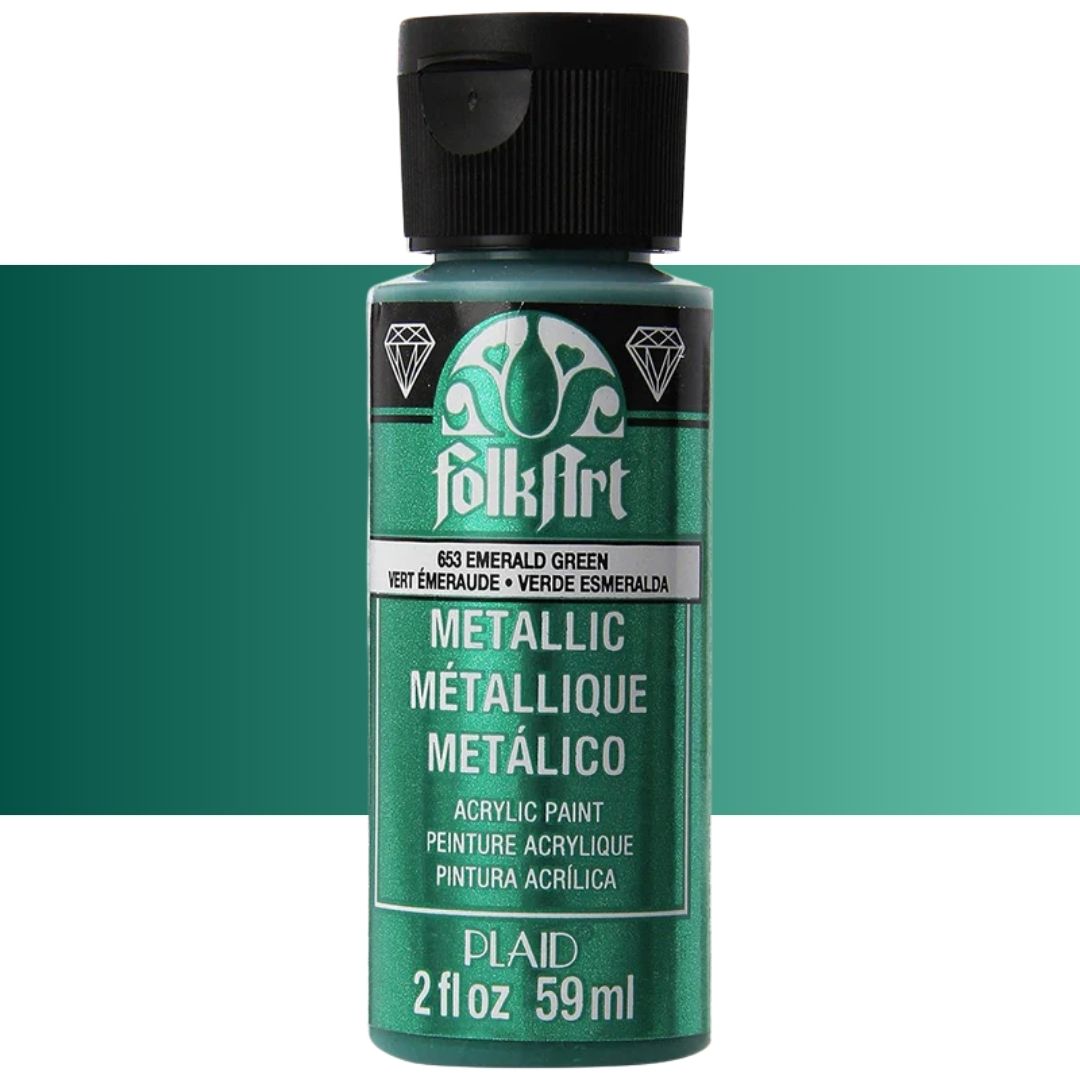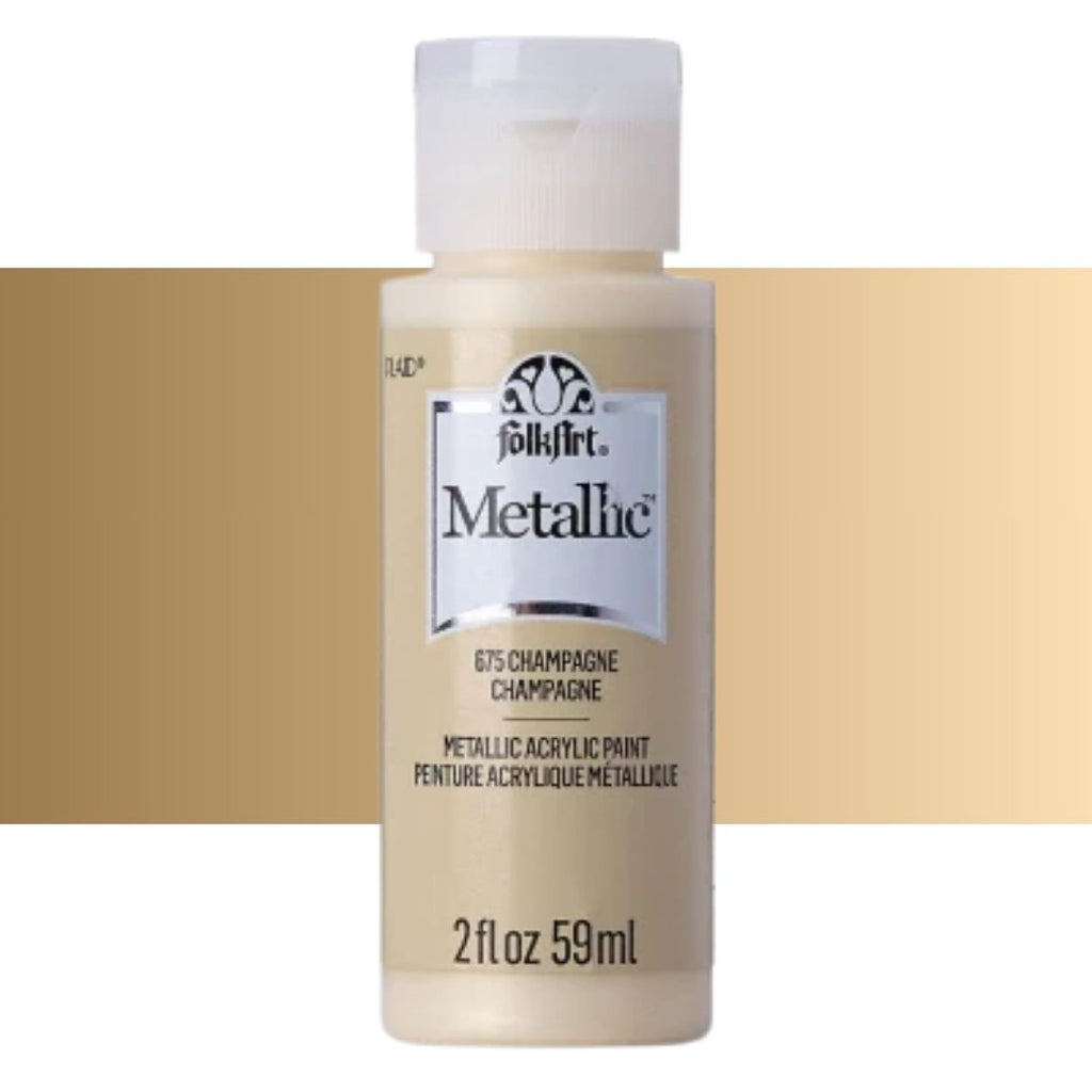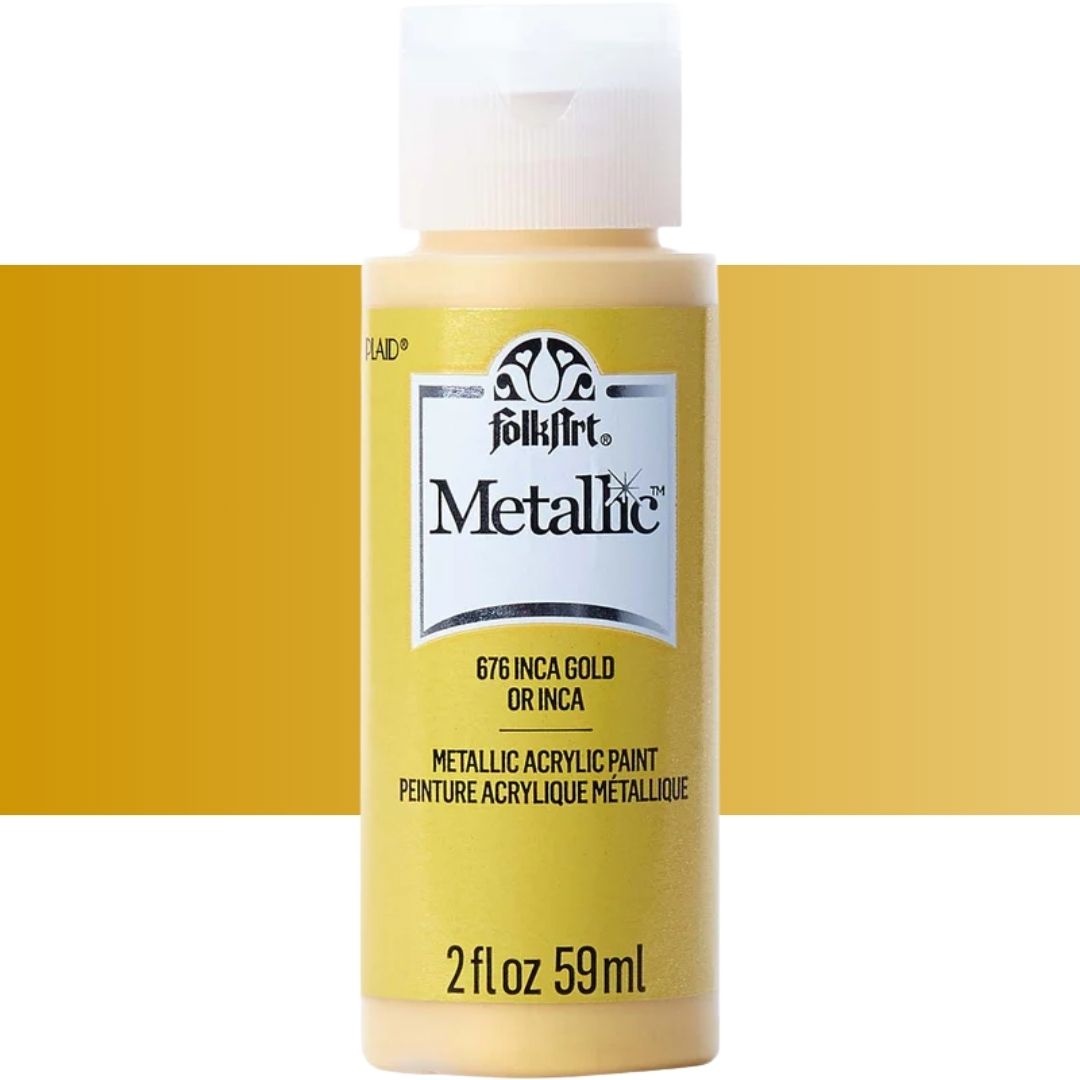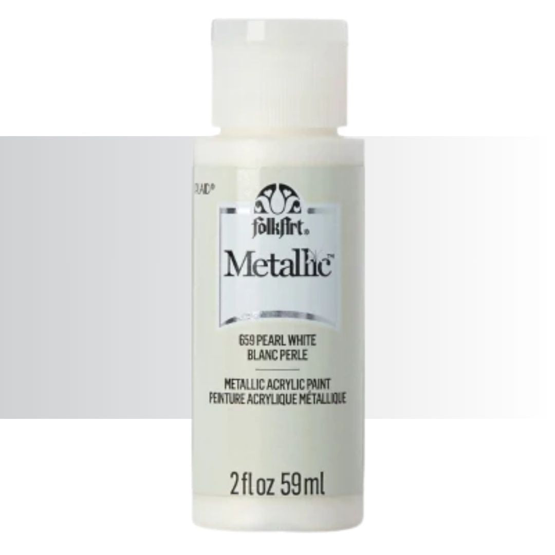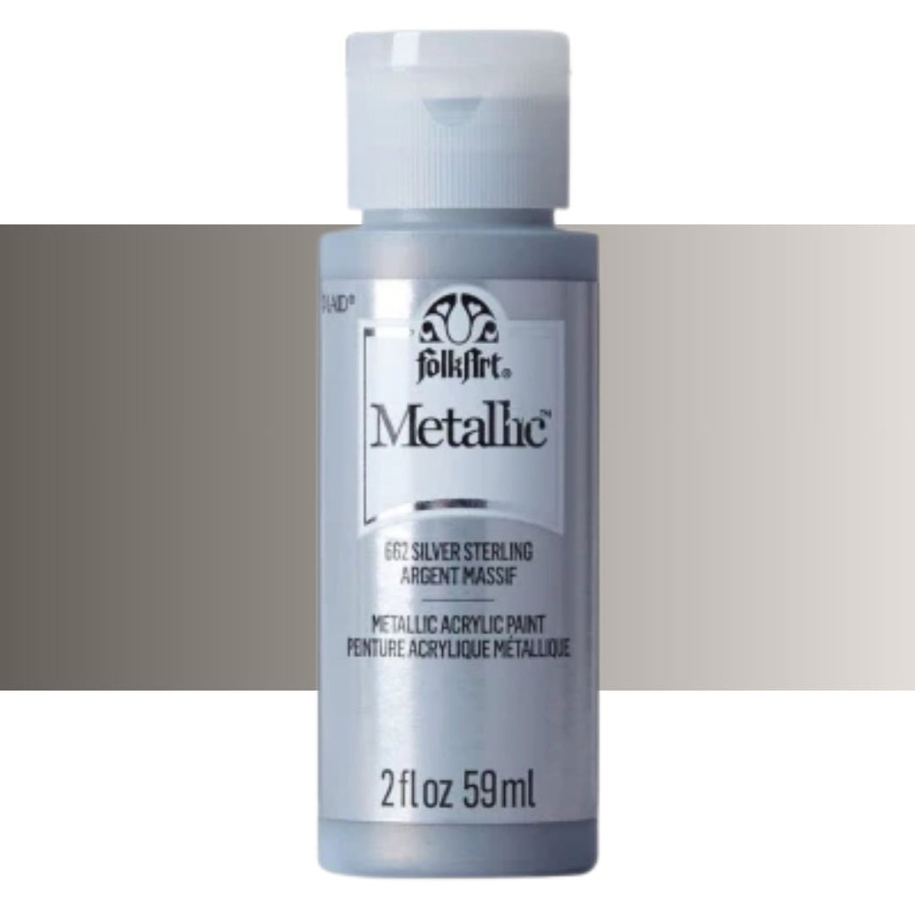 Add some shimmer to your next diy project with FolkArt metallic acrylic paint. This acrylic paint has a creamy and shiny consistency that brushes on smooth leaving a beautiful metallic finish.