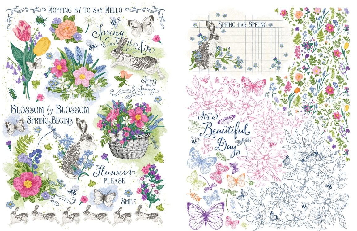 Spring is in the Air - Rub-On Assortment by Graphic 45. Package contains (2) sheets of rub-ons.