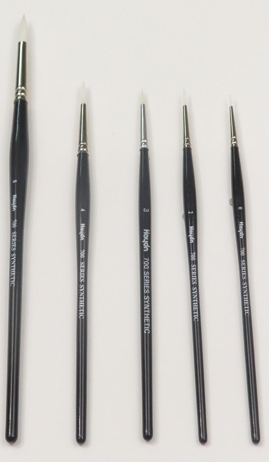 The Haydn 700 Series – Round artist brushes are perfect for adding detail to your work. The round head gives you great control that is great for line work and intricate details. Hand made from the finest white synthetic material, they are ideal for water colour painting. Featuring top quality aluminium ferrule and highly polished black handles, with 12 sizes to choose from.