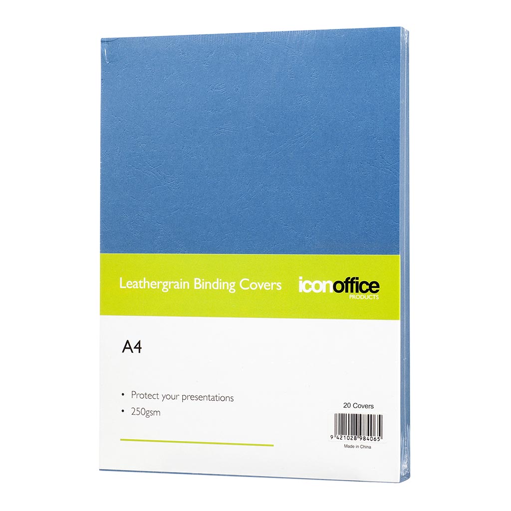 Icon Binding Covers can be used to give your bound documents and booklets a sturdy backing. The heavyweight, 250gsm covers are designed to protect your pages, keeping them clean and presentable. They have a leather-like texture to give your documents a stylish finish. A4, 250gsm. Pack of 20.