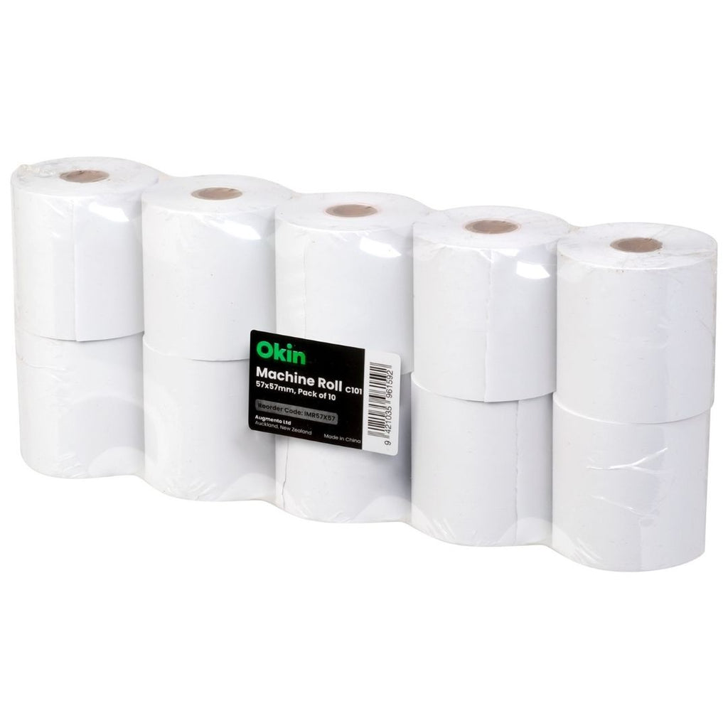 Paper roll for EFTPOS, cash registers and calculators. The quality bond paper absorbs printer ink easily for clean and easy to read, long lasting prints every time. 57mm x 57mm. Roll length of 27.23m. 68gsm. Pack of 10 rolls.