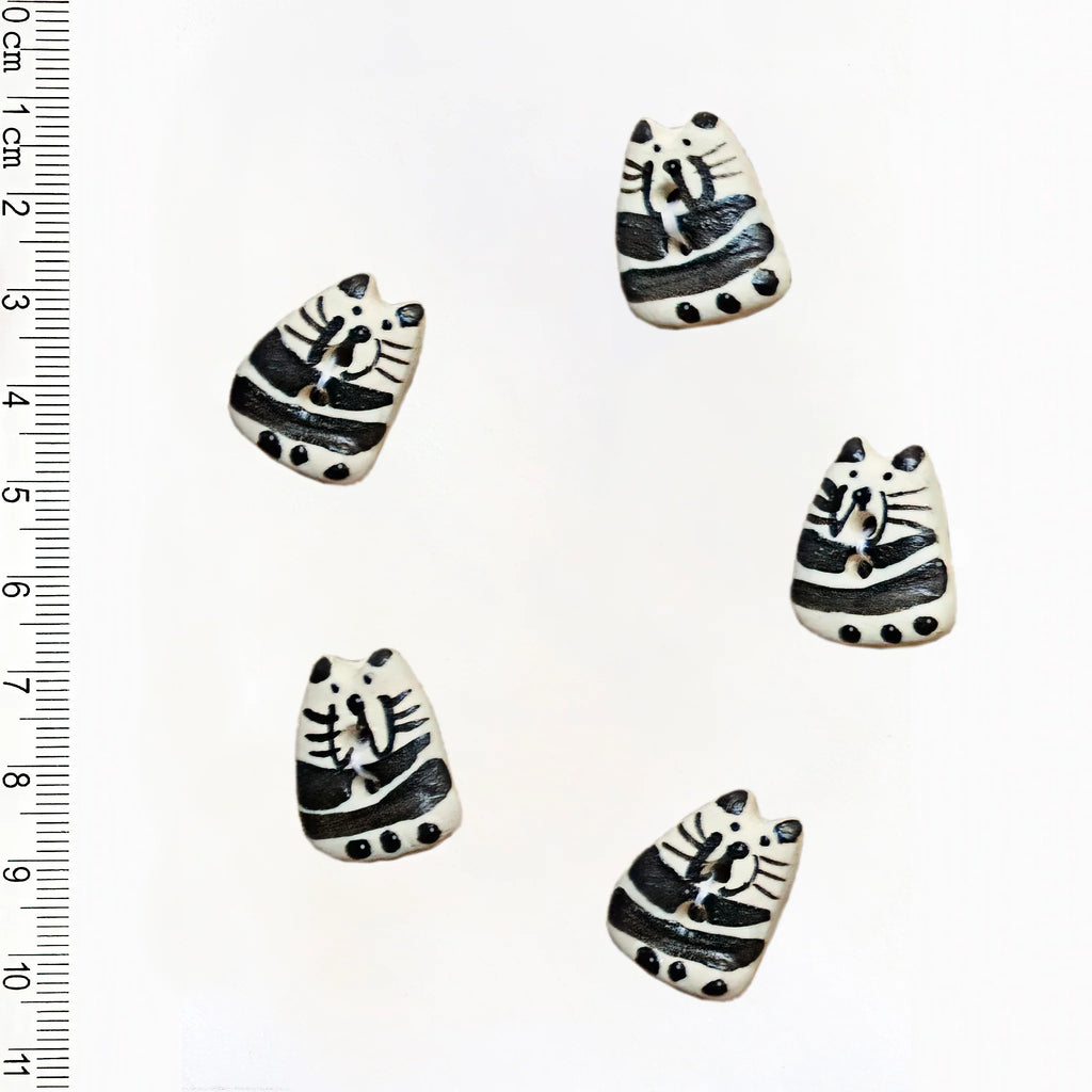 Each button is carefully hand crafted from Incomparable Buttons' unique mixture of ceramic and stoneware clay, and hand painted with an assortment of glazes. Each and every one of the buttons is lovingly made and then painted by hand with a paintbrush, no transfers and no quick tricks. From the tortoise's smile to the cat's whiskers, every stroke is made by hand and each piece is unique.