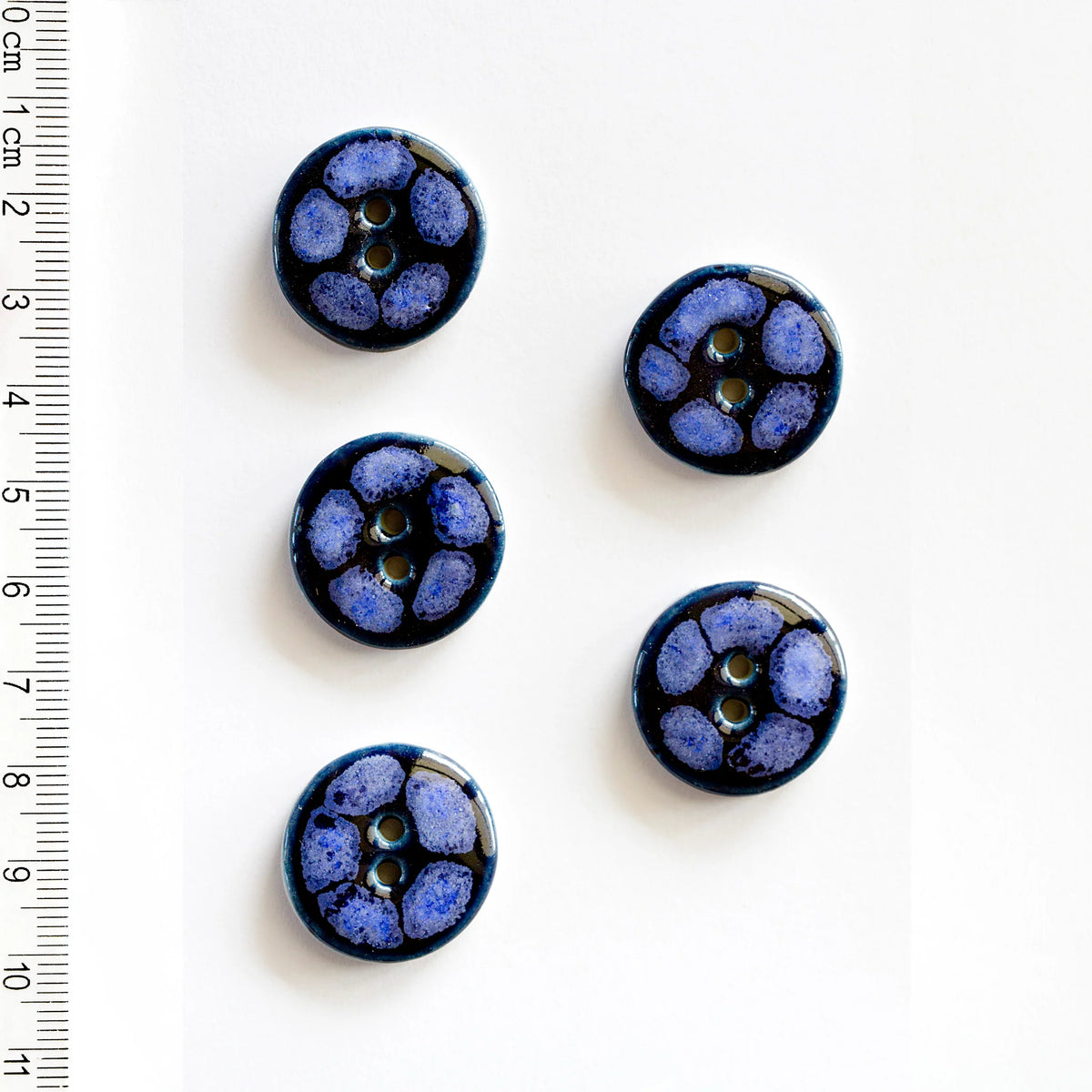Each button is carefully hand crafted from Incomparable Buttons' unique mixture of ceramic and stoneware clay, and hand painted with an assortment of glazes. Each and every one of the buttons is lovingly made and then painted by hand with a paintbrush, no transfers and no quick tricks. From the tortoise's smile to the cat's whiskers, every stroke is made by hand and each piece is unique.