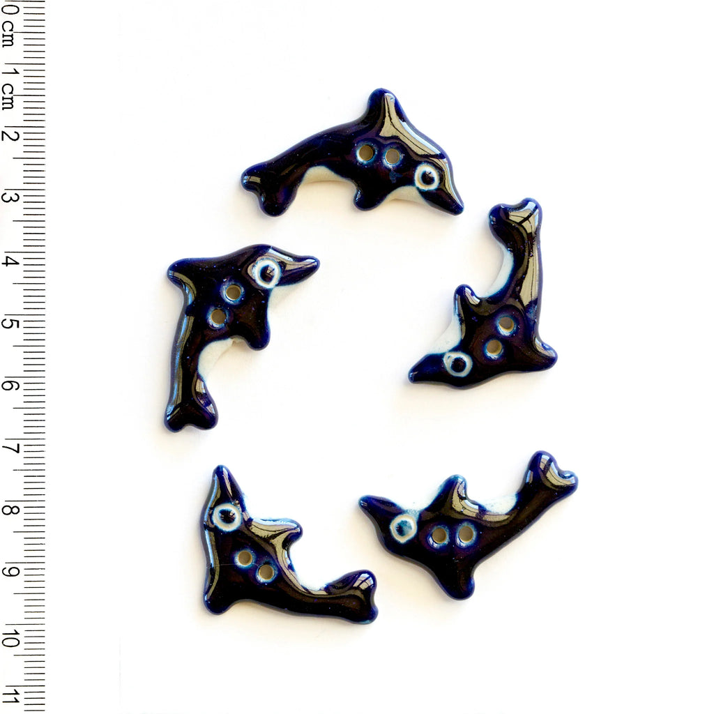 5 leaping blue dolphin buttons.