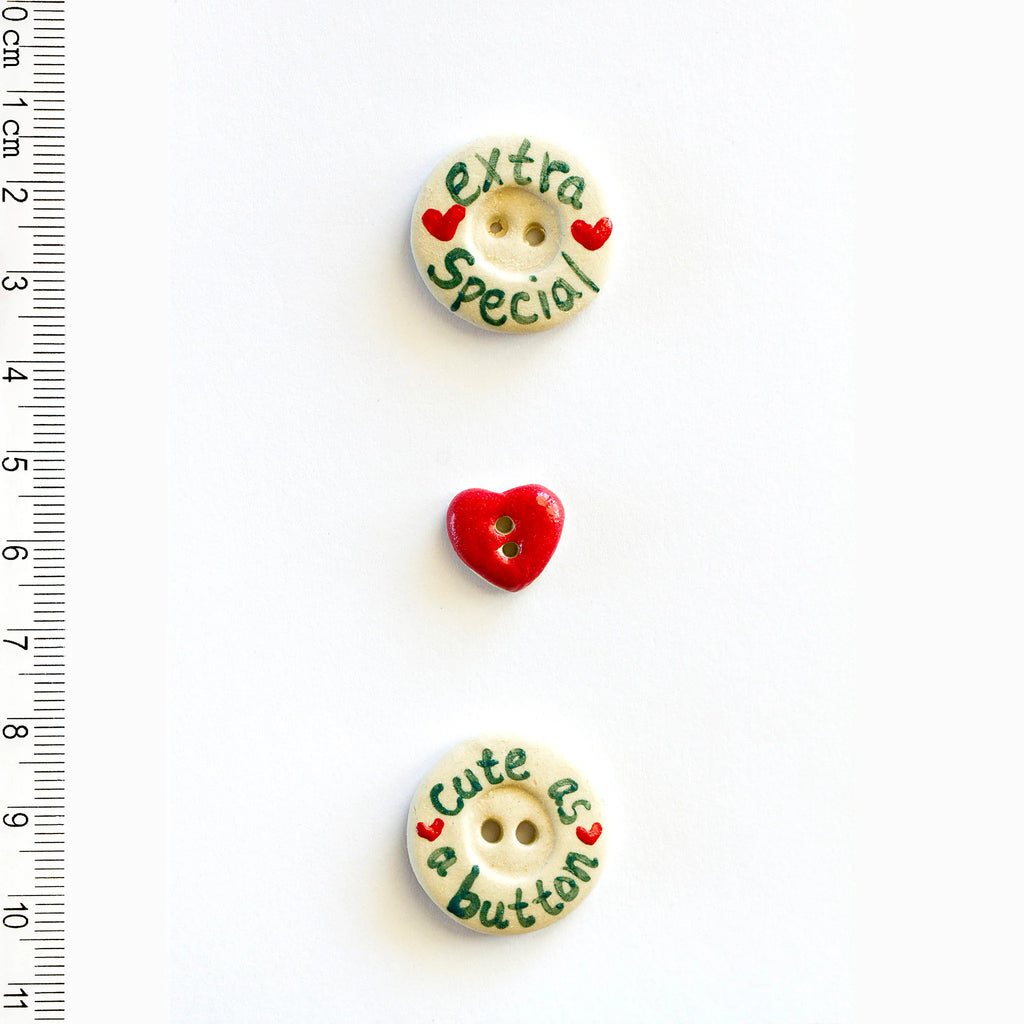 1 handwritten 'extra special' and 1 'cute as a button' with a red heart button.