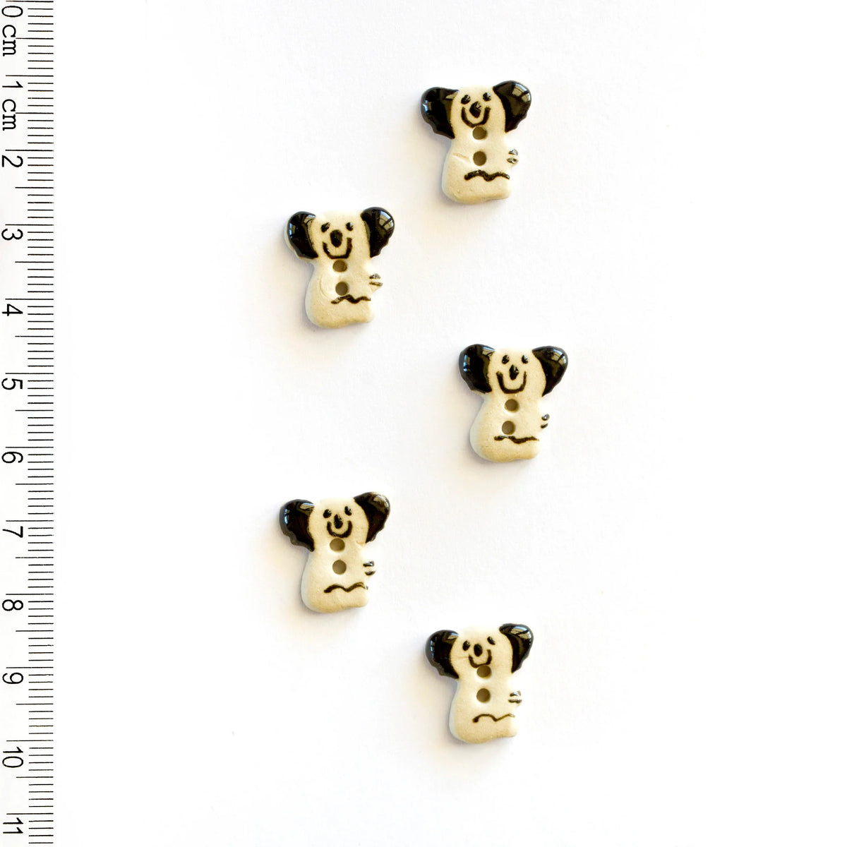 Each button is carefully hand crafted from Incomparable Buttons' unique mixture of ceramic and stoneware clay, and hand painted with an assortment of glazes. Each and every one of the buttons is lovingly made and then painted by hand with a paintbrush, no transfers and no quick tricks. From the tortoise's smile to the cat's whiskers, every stroke is made by hand and each piece is unique.