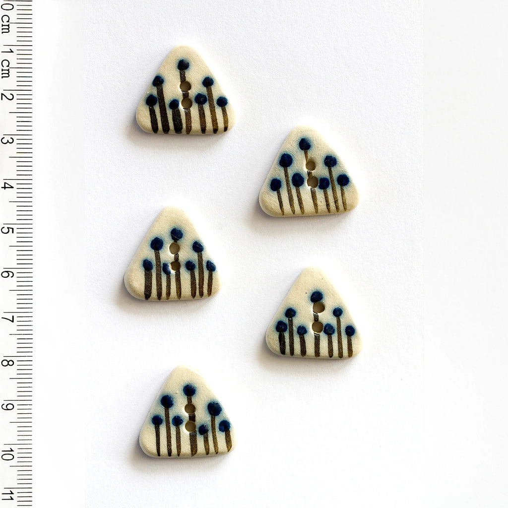 Each button is carefully hand crafted from Incomparable Buttons' unique mixture of ceramic and stoneware clay, and hand painted with an assortment of glazes. Each and every one of the buttons is lovingly made and then painted by hand with a paintbrush, no transfers and no quick tricks. From the tortoise's smile to the cat's whiskers, every stroke is made by hand and each piece is unique.