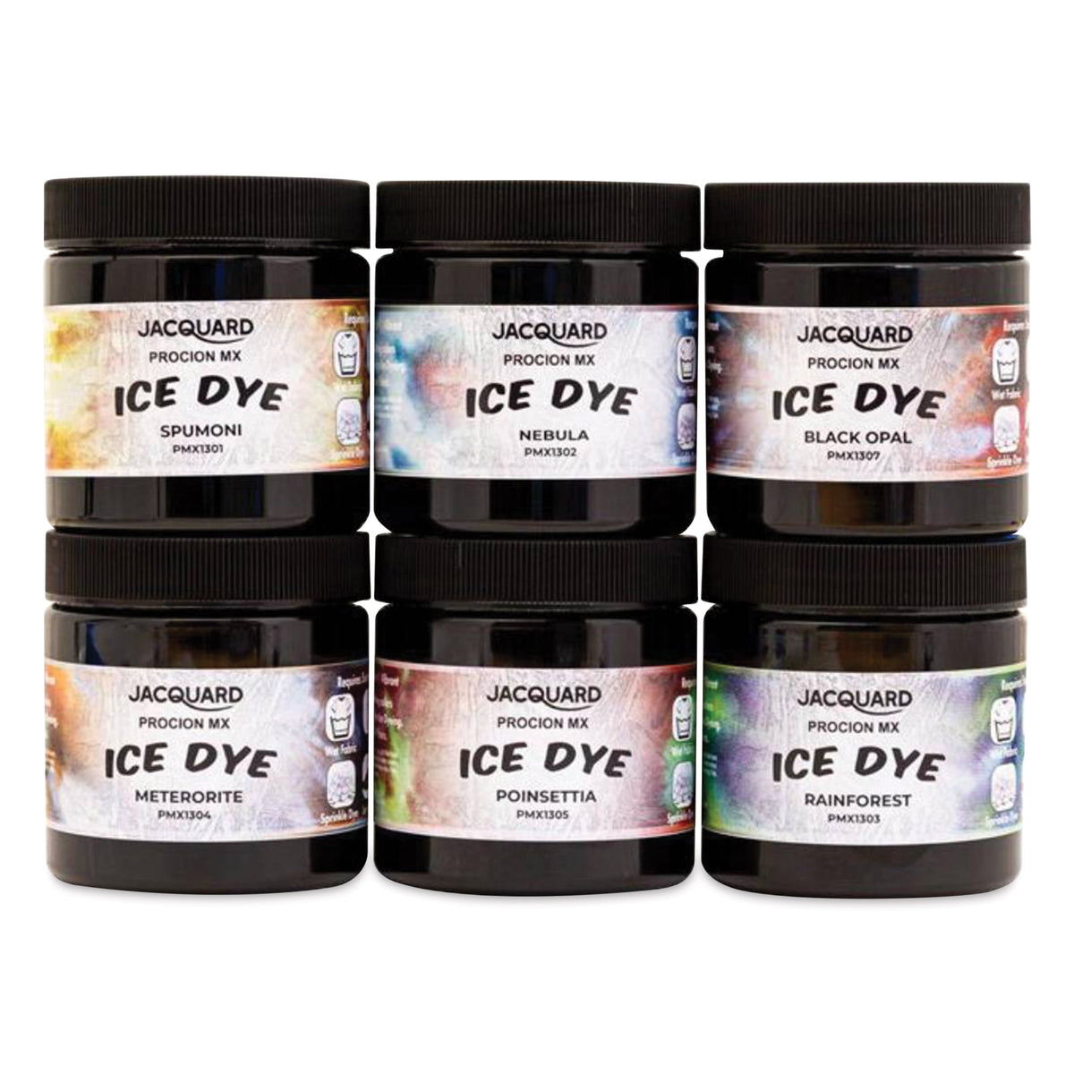 Discover the magic of colour splitting with the Jacquard Procion MX Ice Dye Set. These powdered dyes are created for ice dyeing, where melting ice causes the component colours of the dye to separate and produce crystal-like patterns.