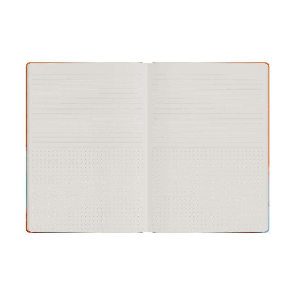 "Two Minds" Hybrid Layout: This notebook features a split interior that bridges the gap between organization and imagination: