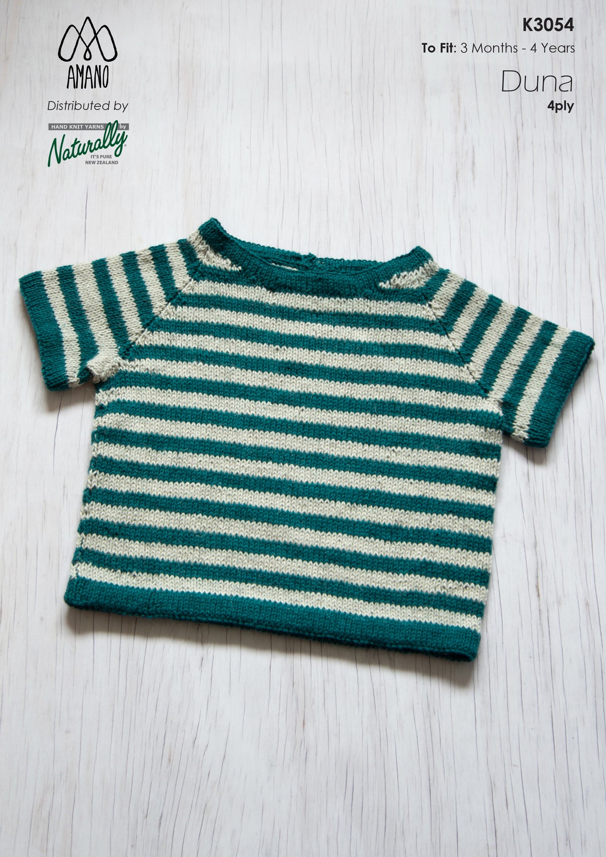 This is a knitting pattern for a practical and stylish Kids Top (Pattern K3054). The pattern is designed to be made with 4ply yarn, offering a lightweight, soft, and comfortable finished garment ideal for babies and toddlers.
