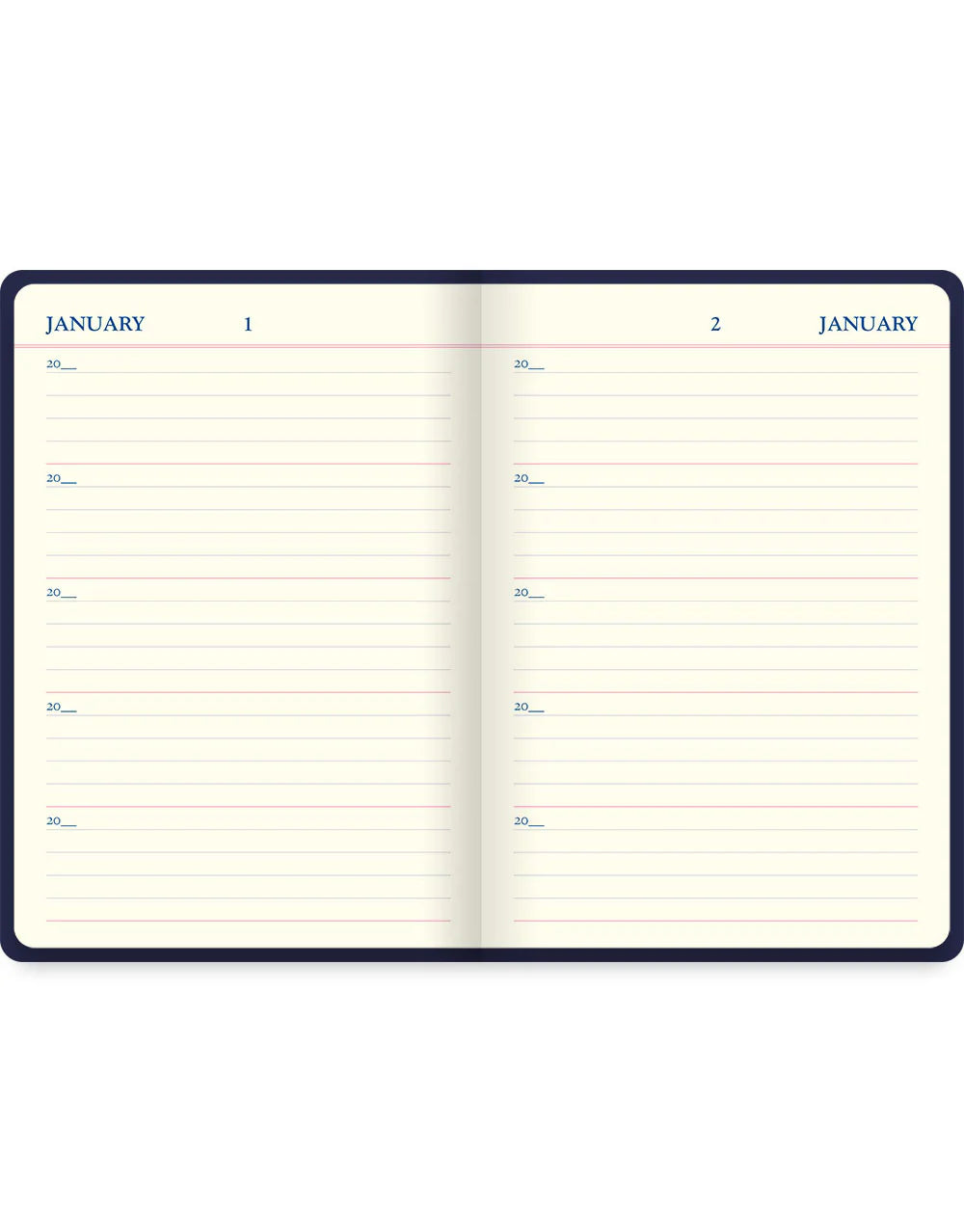The Letts 5 Year A5 Undated Journal in Icon Navy Blue is a unique and inspiring way to document your life over five years. This journal is designed with a "five-year" format, allowing you to record your thoughts, feelings, and memories on the same date for five consecutive years.