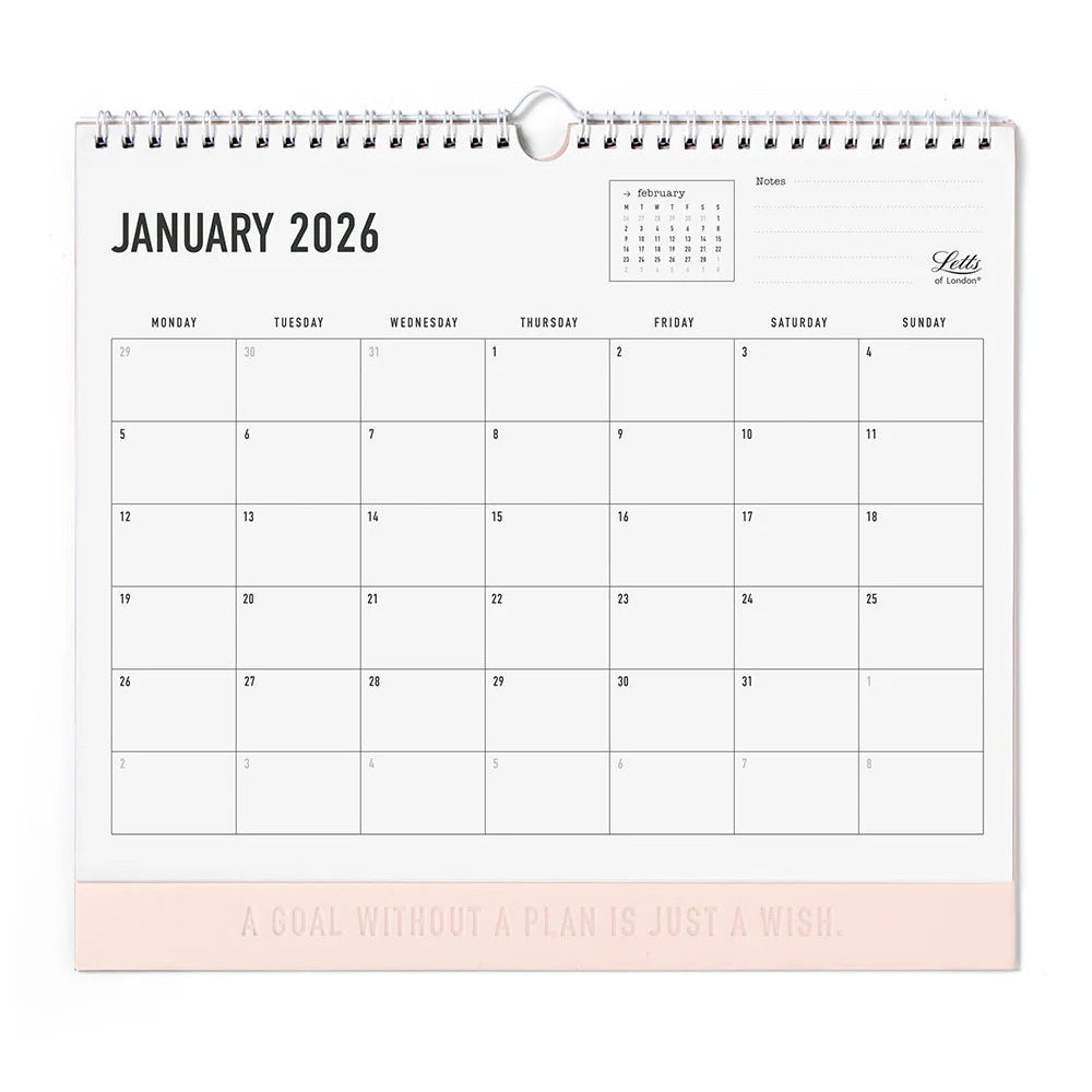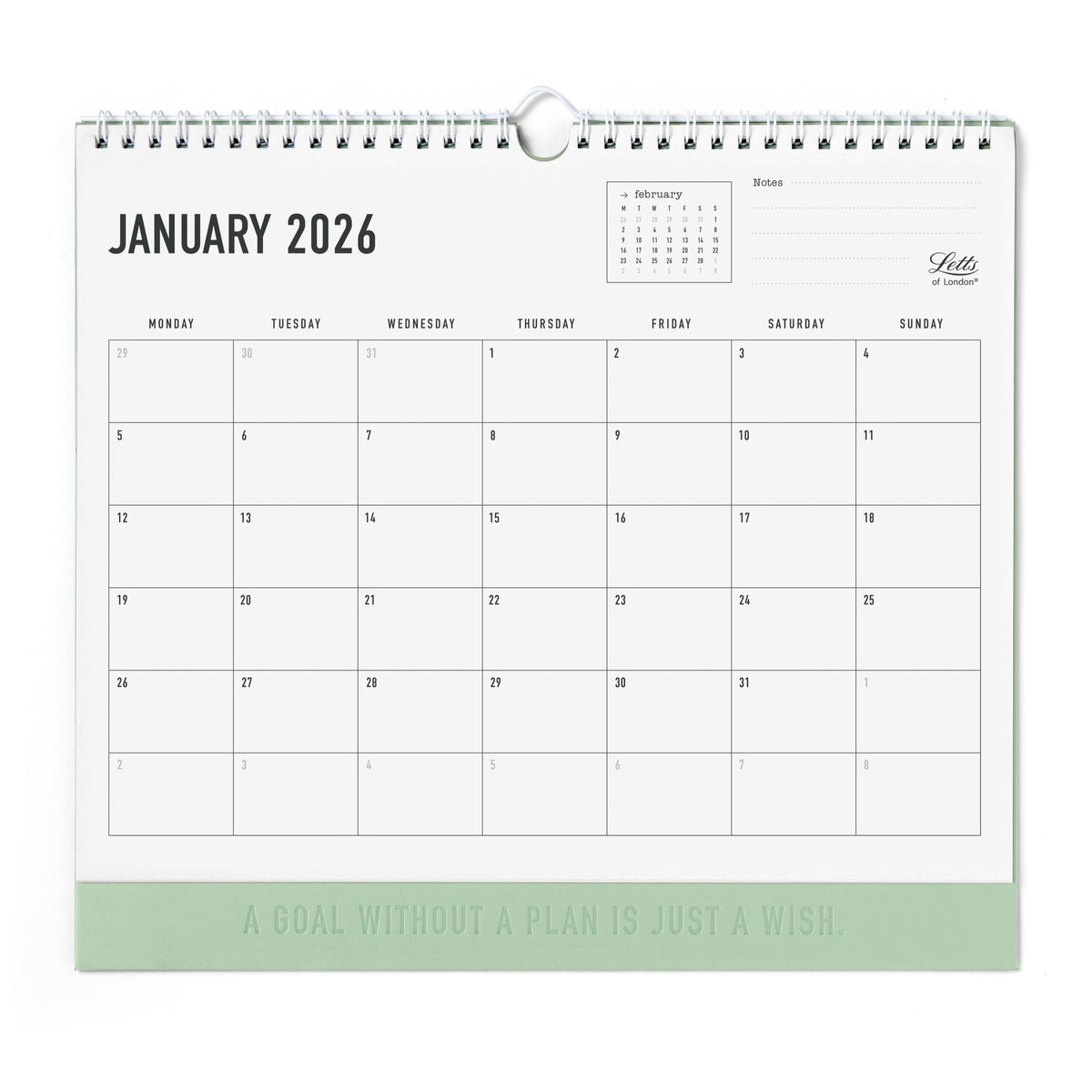 Letts of London Desk Calendar Conscious. Our 12-month Desk Calendar is sustainably crafted with 80gsm recycled white paper and printed with soy ink. Its backing is made with recycled polyester from PET bottles and vegan glue and features an inspirational phrase to help you stay motivated year-round. Make plans for a greener life with the Conscious Collection from Letts of London.
