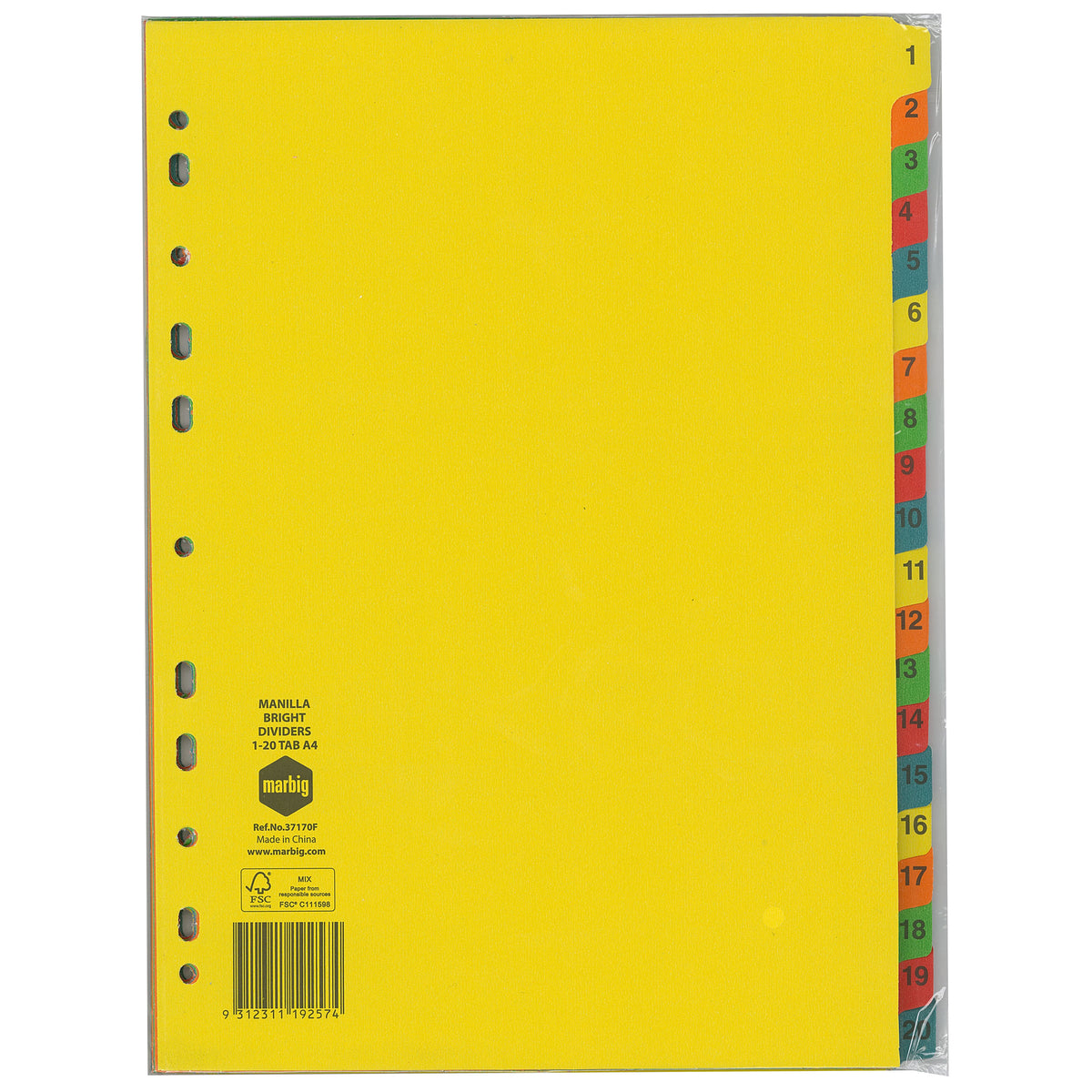 Marbig Indices and Dividers are ideal for use in all binders and lever arch files. Available in a variety of tabs and colours. Organising your filing is even easier with Marbig!