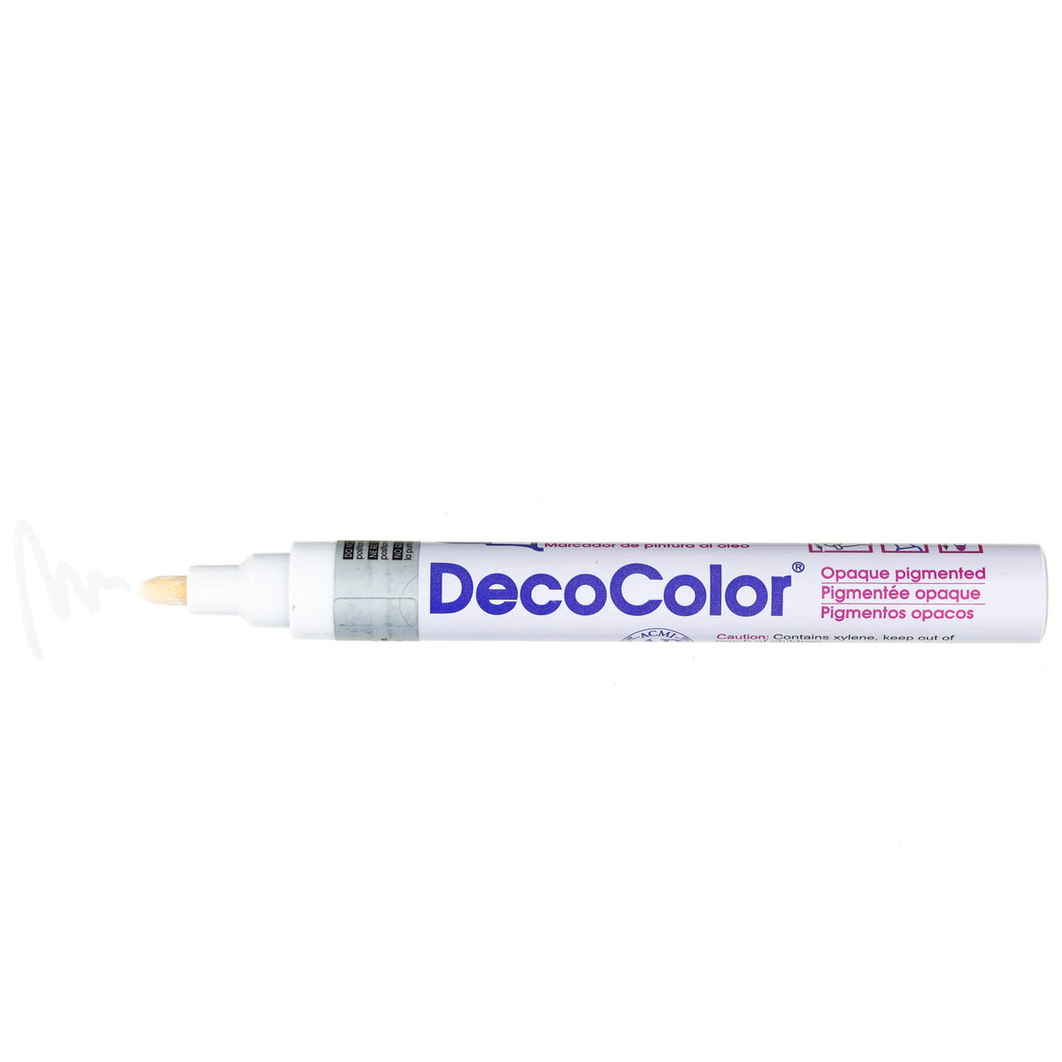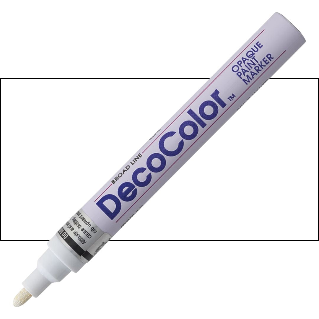 Use these DecoColor® Broad Point paint marker pen to write out large messages on glass or mirrors or to cover a larger surface area on other projects. The larger tip of this paint pen allows for a quick covering of any glass, paper, wood, clay, porcelain, stone, metal, or mirror surface. The paint is acid-free, lightfast, weatherproof, and pigmented.