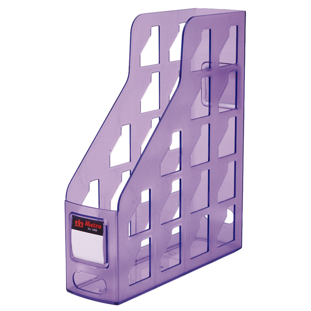Metro's magazine files are wide enough to hold a phone book and deep enough to hold an A4 ring binder.