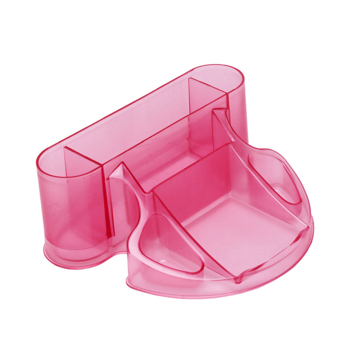 Modern desk accessory that conveniently holds cd's, along with self adhesive note pads, writing instruments, clips etc.
