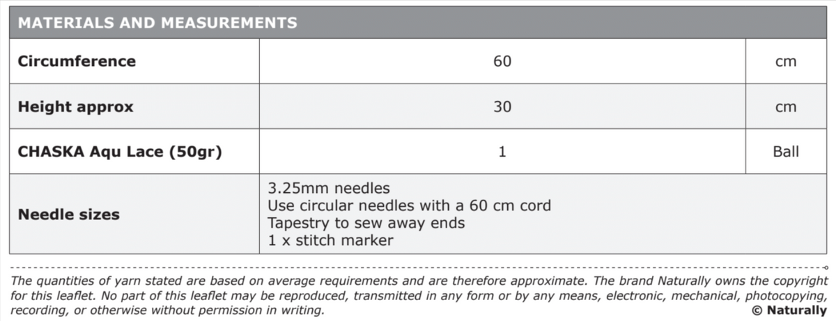 Yarn Recommendation: The pattern is designed for Chaska Aqu Lace yarn, which is a 2ply. This high-quality baby alpaca and silk yarn will ensure the finished cowl is both incredibly soft and beautiful.