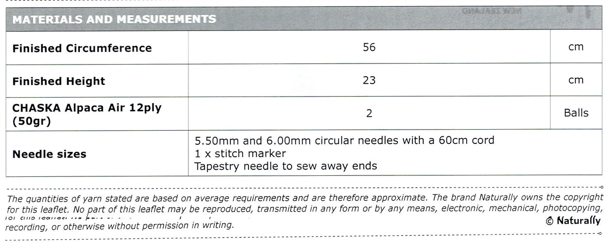 Yarn Recommendation: The pattern is designed for Chaska Alpaca Air 12ply yarn. This high-quality baby alpaca yarn will ensure the finished cowl is both incredibly soft and beautiful.