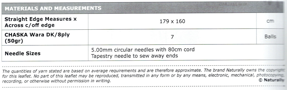 Yarn Recommendation: The pattern is designed for Inca Chaska Wara 8ply yarn, a blend of baby alpaca, merino, and cotton. This high-quality yarn will ensure the finished scarf is both incredibly soft and beautiful.