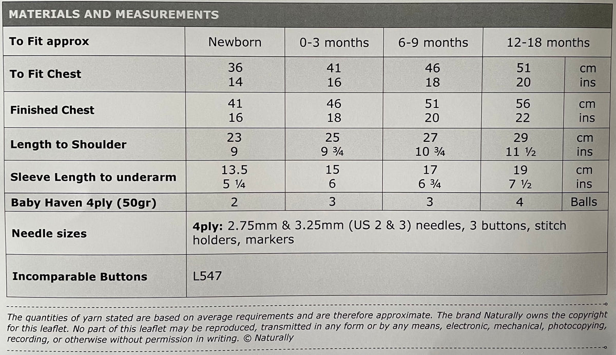 Yarn Recommendation: The pattern is designed for Naturally Baby Haven 4ply yarn, which is available in both classic and new colors. This high-quality merino wool will ensure the finished sweater is both soft and beautiful.