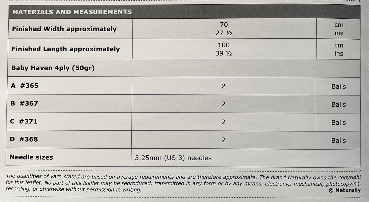 Yarn Recommendation: The pattern is designed for Naturally Baby Haven 4ply yarn, which is available in both classic and new colors. This high-quality merino wool will ensure the finished blanket is both soft and beautiful.