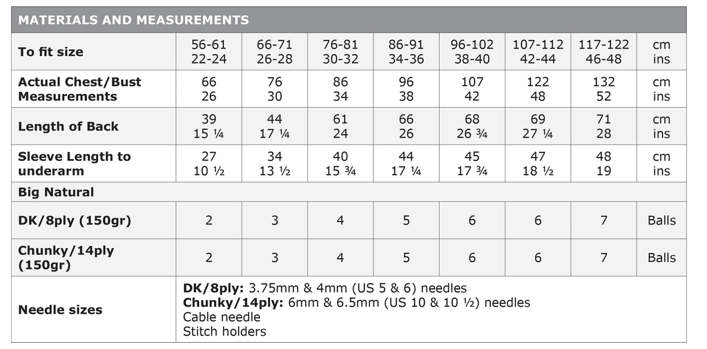 Yarn Recommendation: The pattern is designed for both Naturally Big Natural DK (8ply) and Naturally Big Natural Chunky (14ply) yarns. This high-quality yarn will ensure the finished sweater is both soft and beautiful.