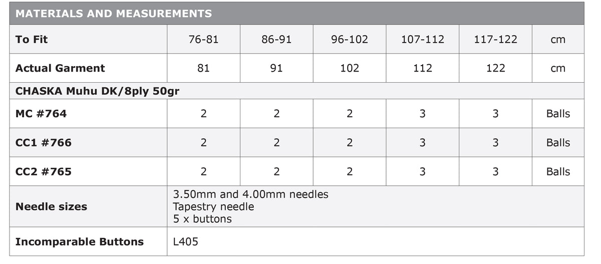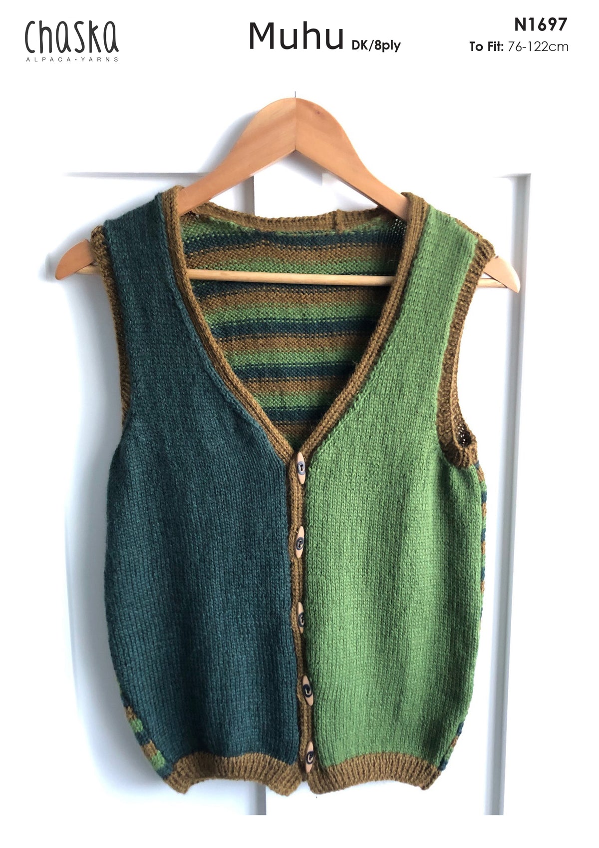 Yarn Recommendation: The pattern is designed for Inca Chaska Muhu 8ply yarn. This high-quality baby alpaca yarn will ensure the finished vest is both incredibly soft and beautiful.