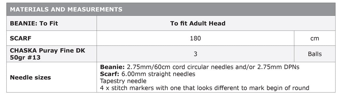 Yarn Recommendation: The pattern is designed for Chaska Puray fine DK yarn, a blend of baby alpaca and merino. This high-quality yarn will ensure the finished set is both incredibly soft and beautiful.