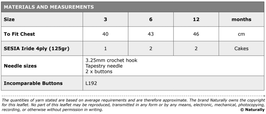 Yarn Recommendation: The pattern is designed for Sesia Iride Print 4ply yarn. This high-quality yarn will ensure the finished cardigan is both soft and beautiful. The print effect will also add a unique, colorful pattern to the finished garment.