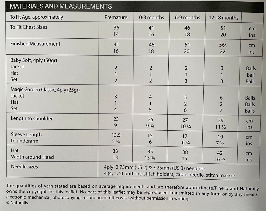 Sizing: The pattern provides instructions for a range of children's sizes, from newborn to 18 months.