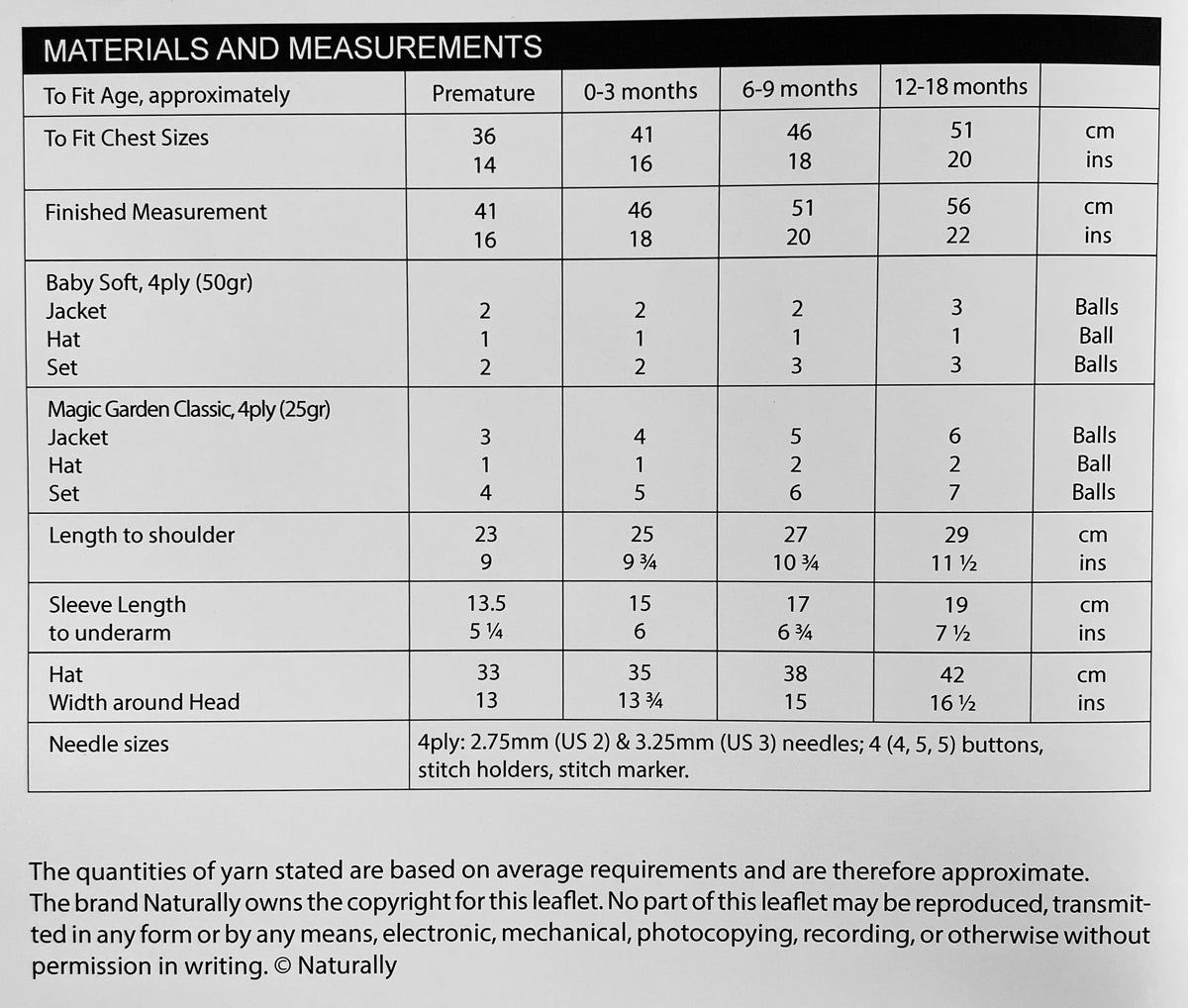 Sizing: The pattern provides instructions for a range of children's sizes, from newborn to 18 months.