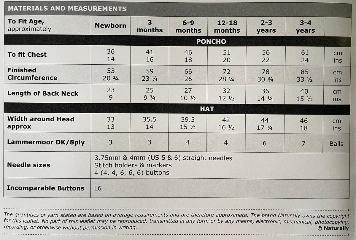 Yarn Recommendation: The pattern is designed for Naturally Lammermoor Organic DK 8ply yarn. This high-quality organic wool will ensure the finished poncho is both soft and beautiful.