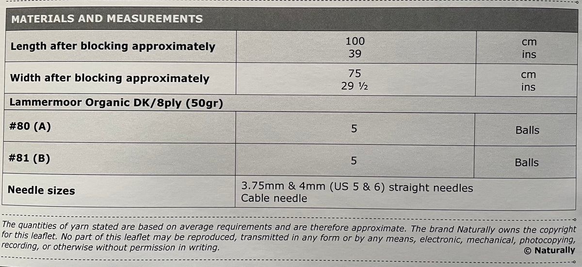 Yarn Recommendation: The pattern is designed for Naturally Lammermoor Organic DK 8ply yarn. This high-quality organic wool will ensure the finished blanket is both soft and beautiful.