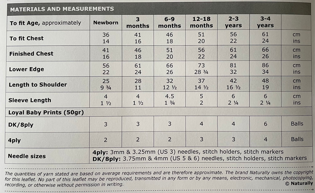 Yarn Recommendation: The pattern is designed for a combination of Naturally Loyal Baby Prints 4ply yarn and Loyal Baby Prints DK 8ply yarn. This high-quality yarn will ensure the finished dress is both soft and beautiful. The print effect will also add a unique, colorful pattern to the finished garment.